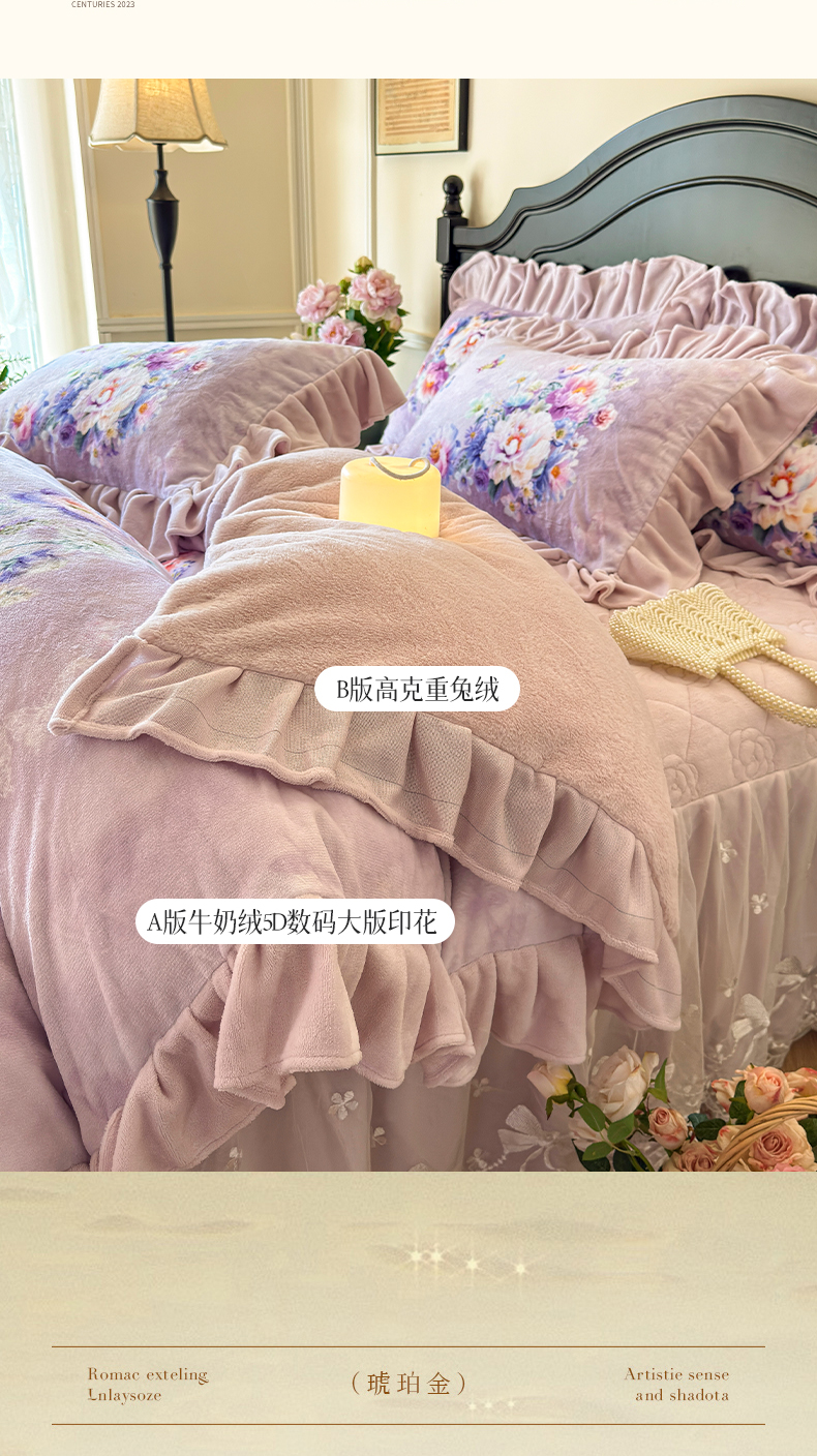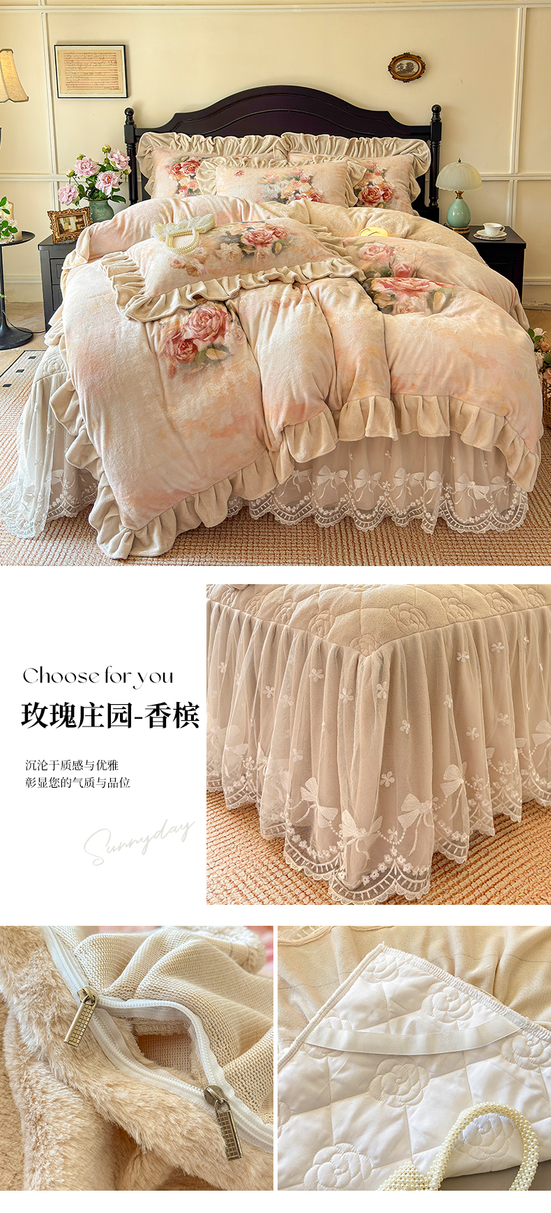 (总)宜凡家纺 2025新款兔绒提花牛奶绒夹棉床裙四件套,爱心 少女粉,爱心 粉紫,爱心 驼色,蝶舞 大红,蝶舞 米色,蝶舞 浅紫,蝶舞 玉色,简爱 苍青,简爱 豆沙紫,简爱 玉色,樱桃 苍青,樱桃 豆沙紫,樱桃 奶油白