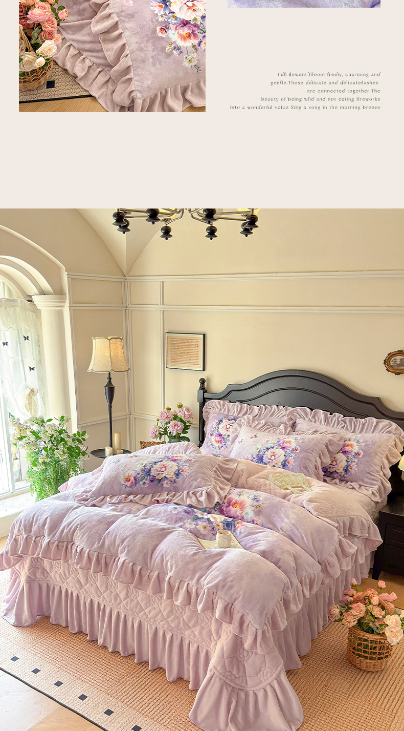 (总)宜凡家纺 2025新款兔绒提花牛奶绒夹棉床裙四件套,爱心 少女粉,爱心 粉紫,爱心 驼色,蝶舞 大红,蝶舞 米色,蝶舞 浅紫,蝶舞 玉色,简爱 苍青,简爱 豆沙紫,简爱 玉色,樱桃 苍青,樱桃 豆沙紫,樱桃 奶油白