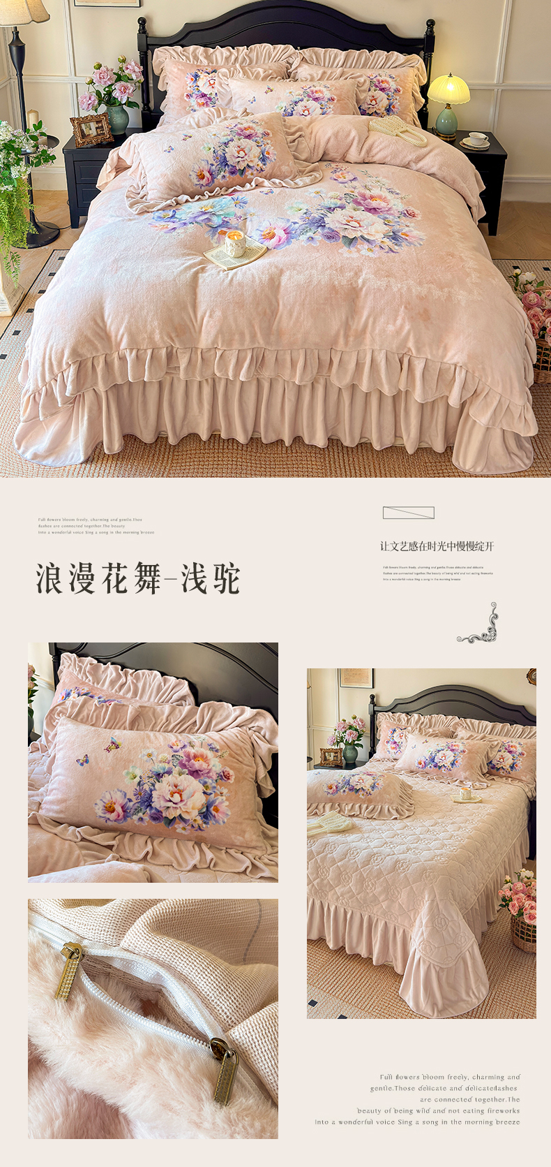 (总)宜凡家纺 2025新款全棉数码印花床裙四件套系列一,静若幽兰,浮云织梦,梦幻花园,陌上花开