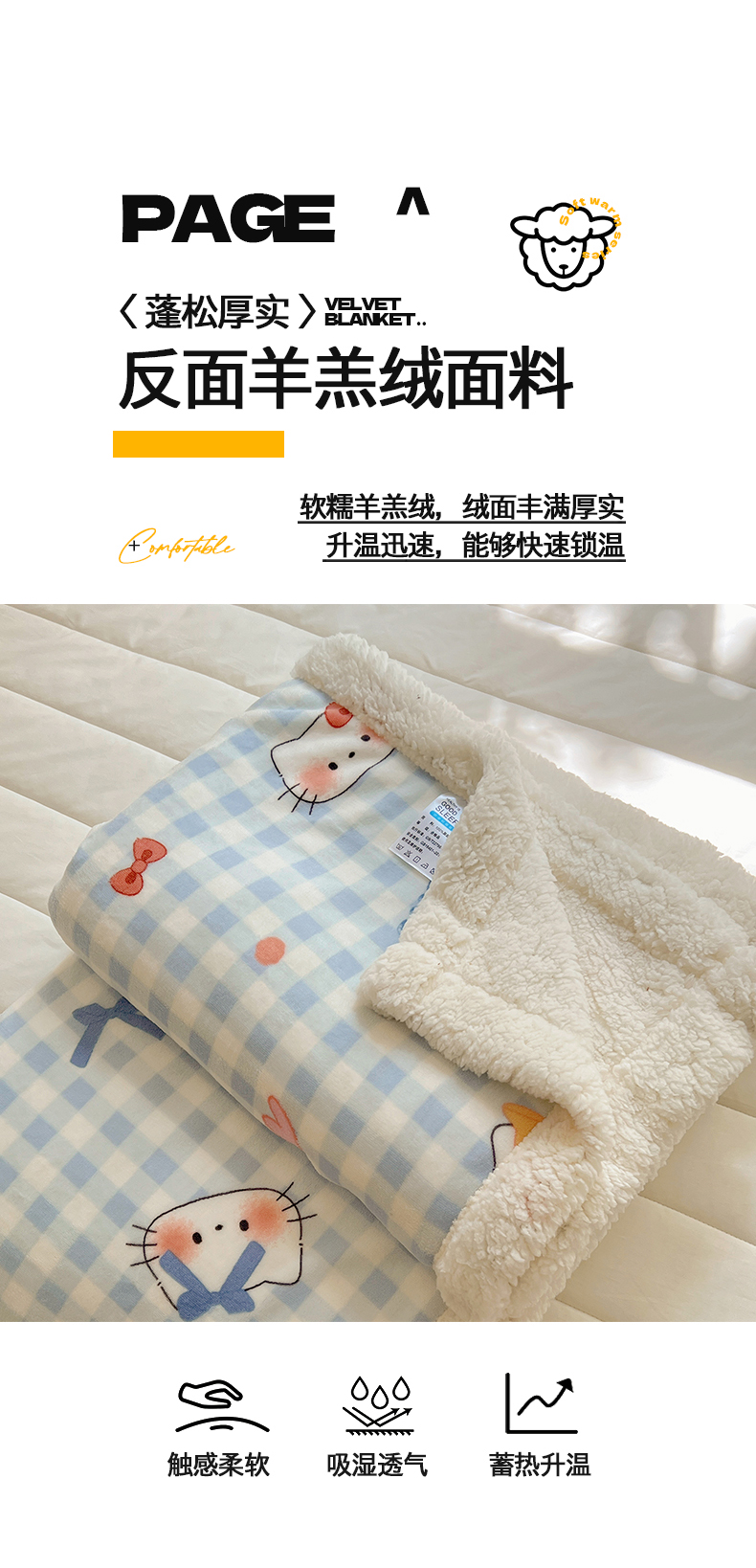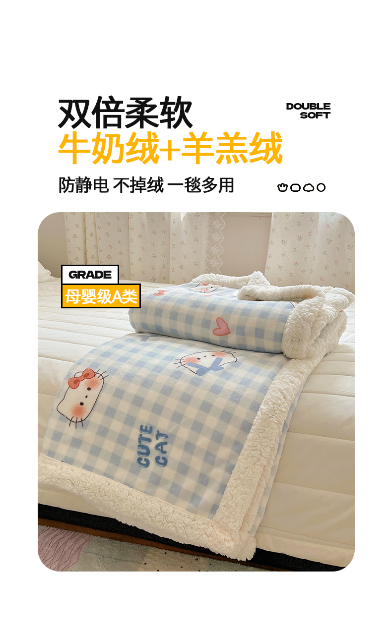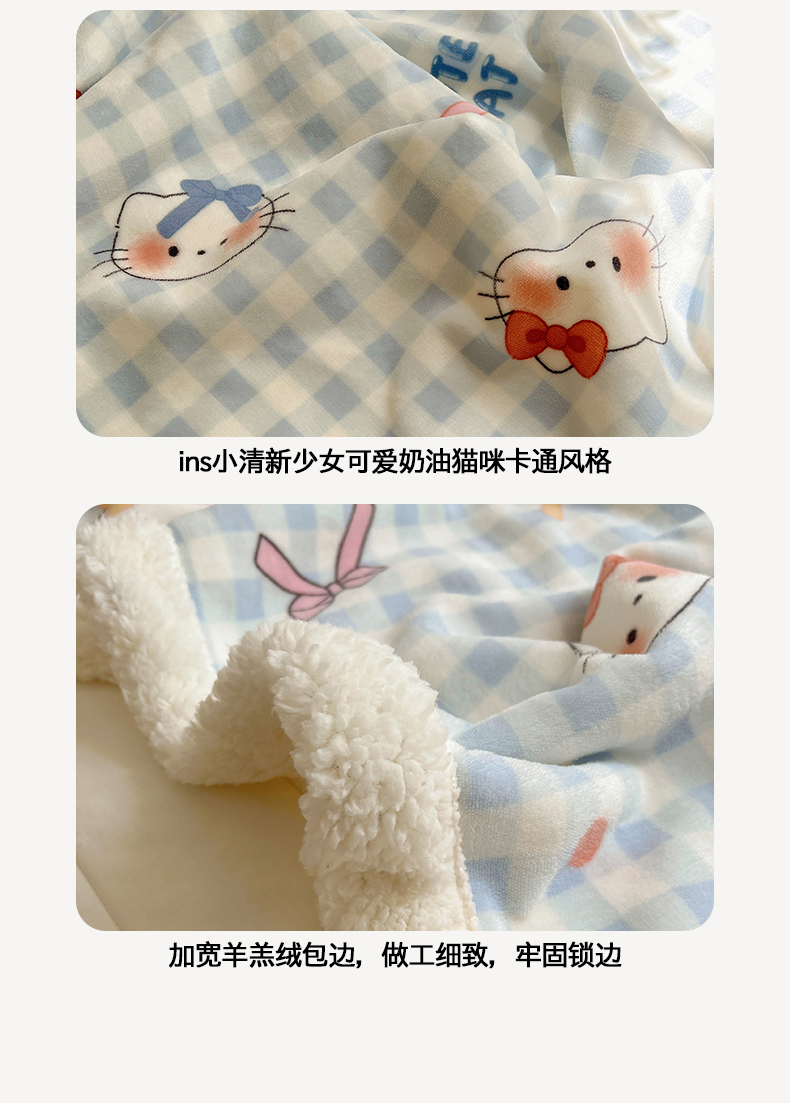 当前位置: 91家纺网 > 商品网购 > 床品套件 > 四件套 > 葡萄家 2025新款A类ins小清新少女可爱奶油猫咪卡通加厚牛奶绒羊羔绒多功能毛毯毯子 绒毛毯-MT蓝格喵喵