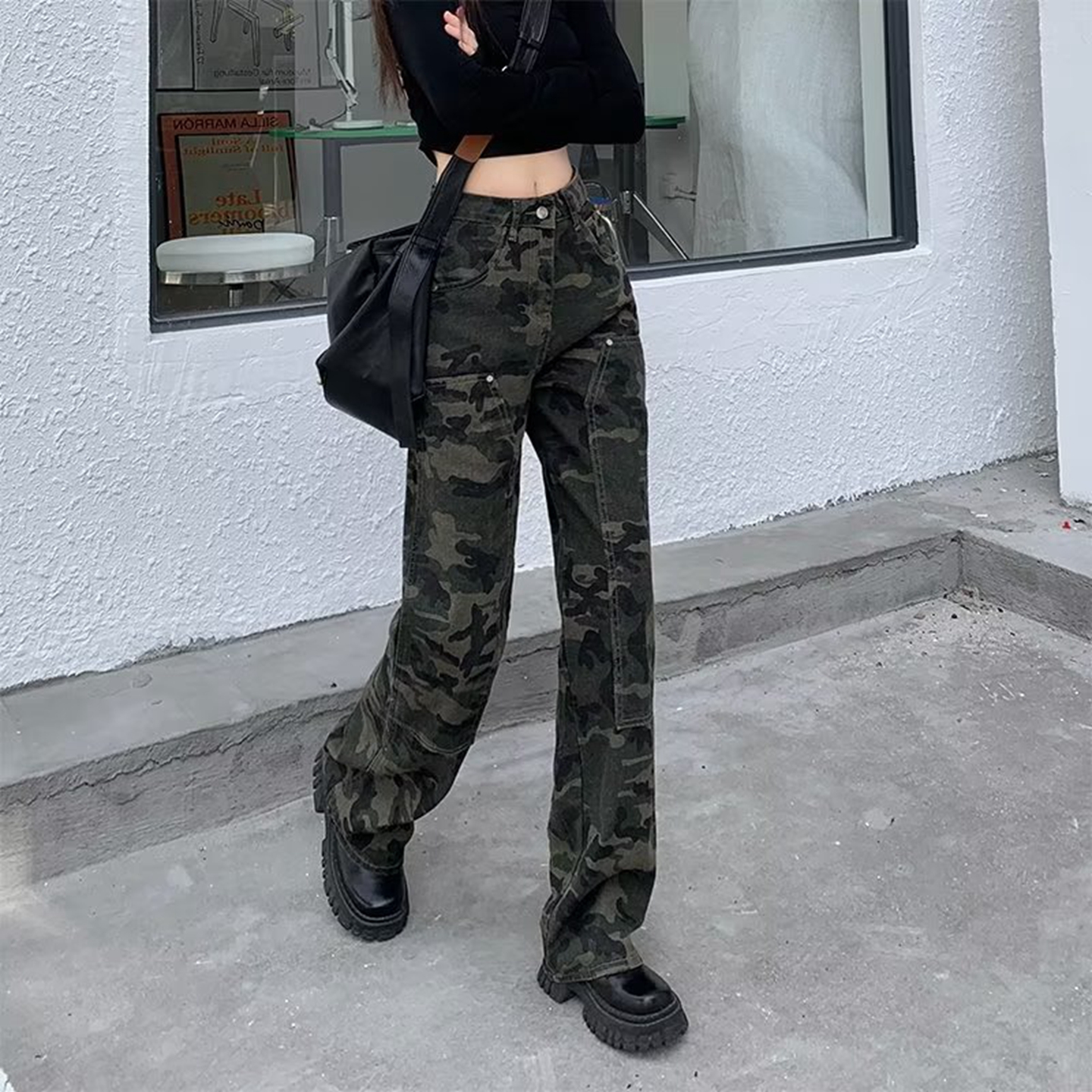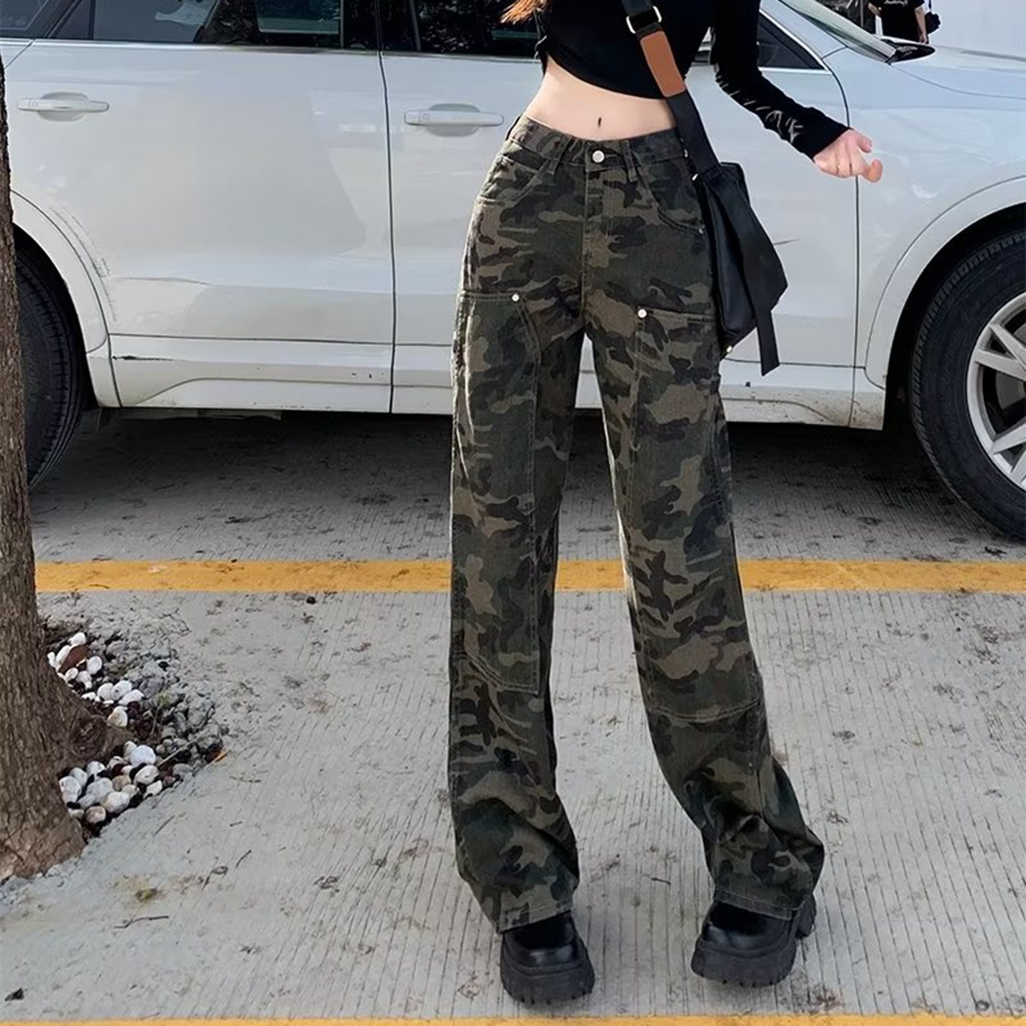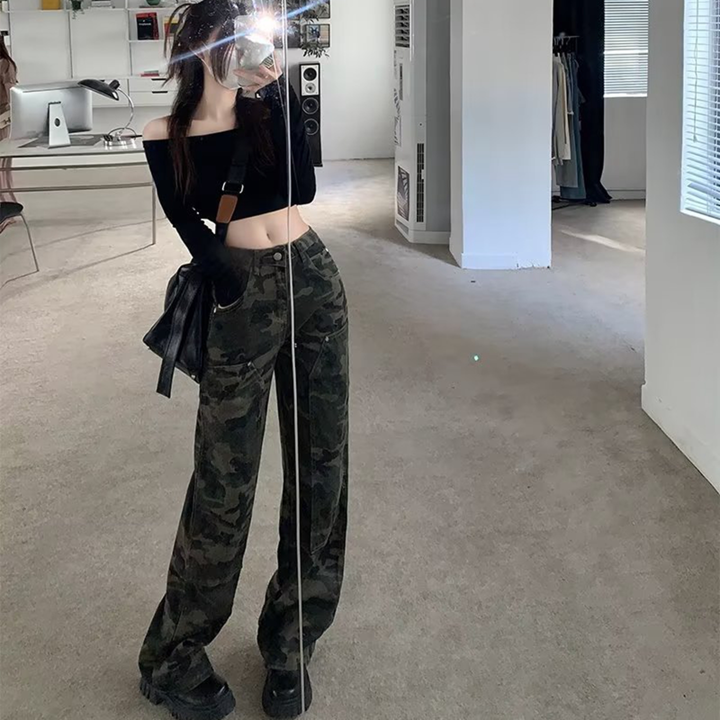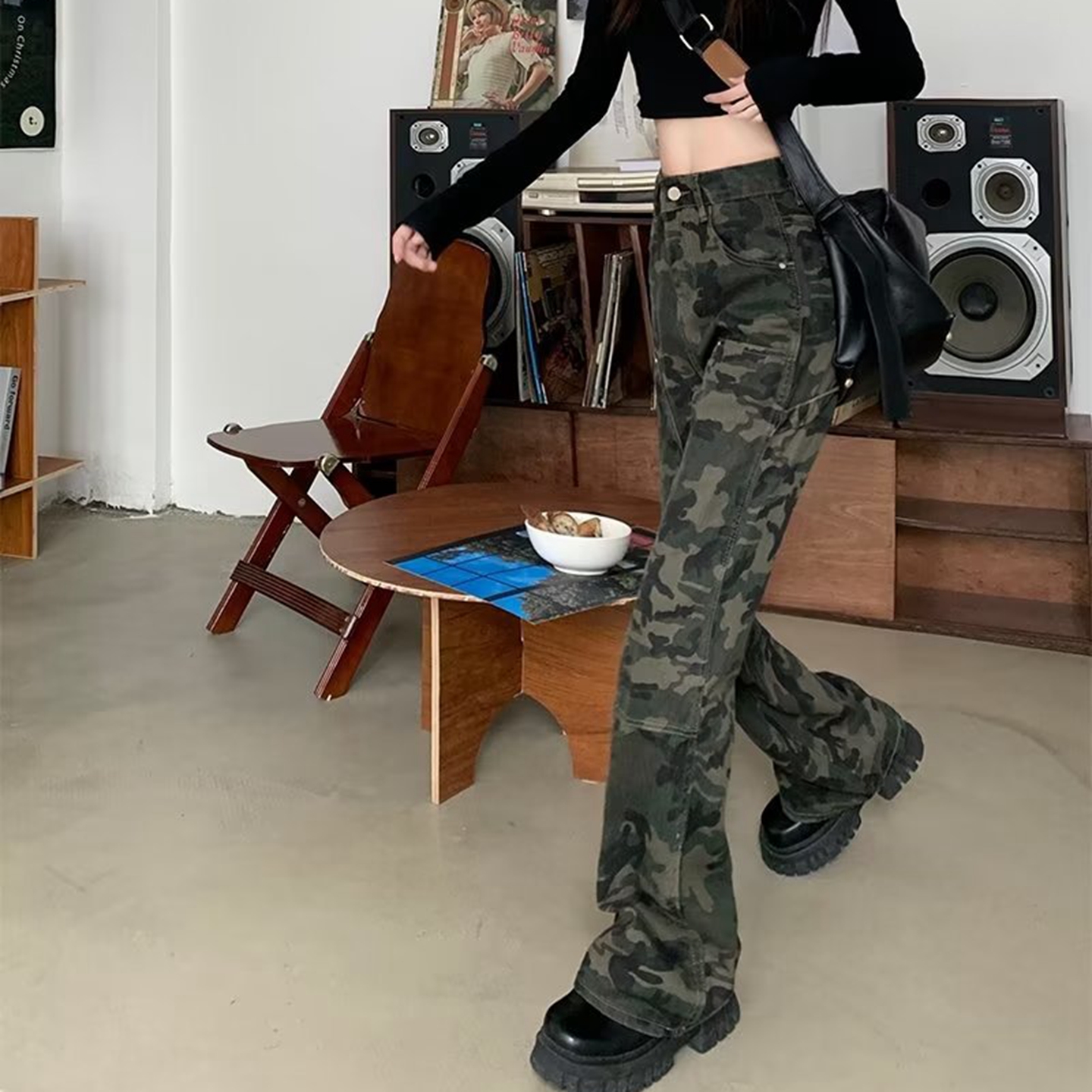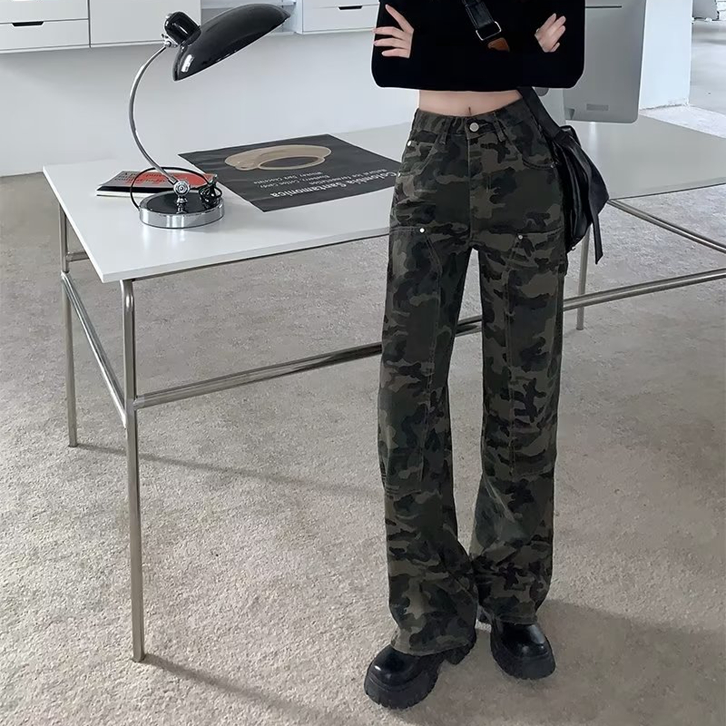 (总)洛兰沙家居馆【只代发】【只代发】 2025新款只代发美式迷彩牛仔裤女春秋新款百搭复古高腰显瘦宽松直筒长裤潮批发29