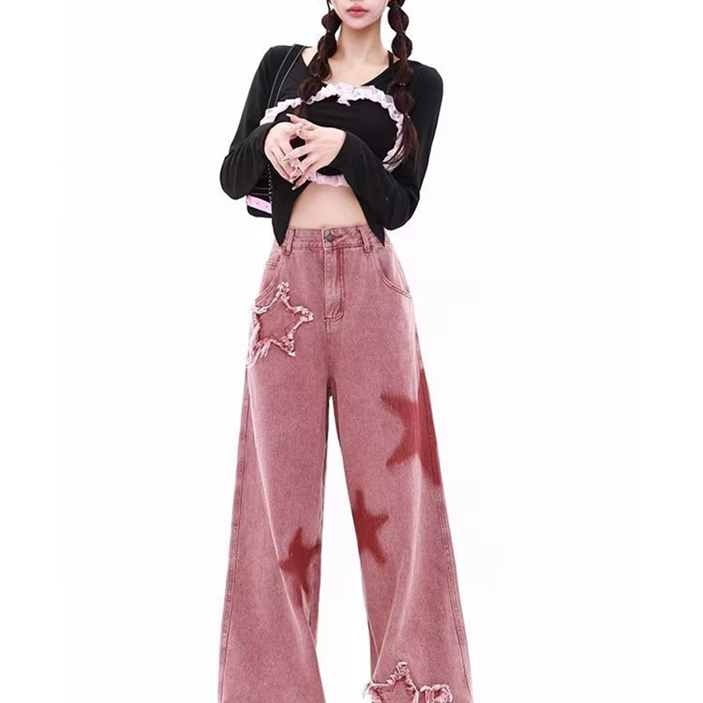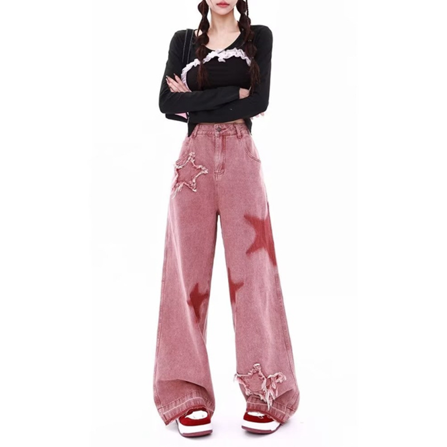 (总)洛兰沙家居馆【只代发】【只代发】 2025新款只代发大码美式高街设计感直筒牛仔裤新款宽松高腰显瘦阔腿长裤女批发27