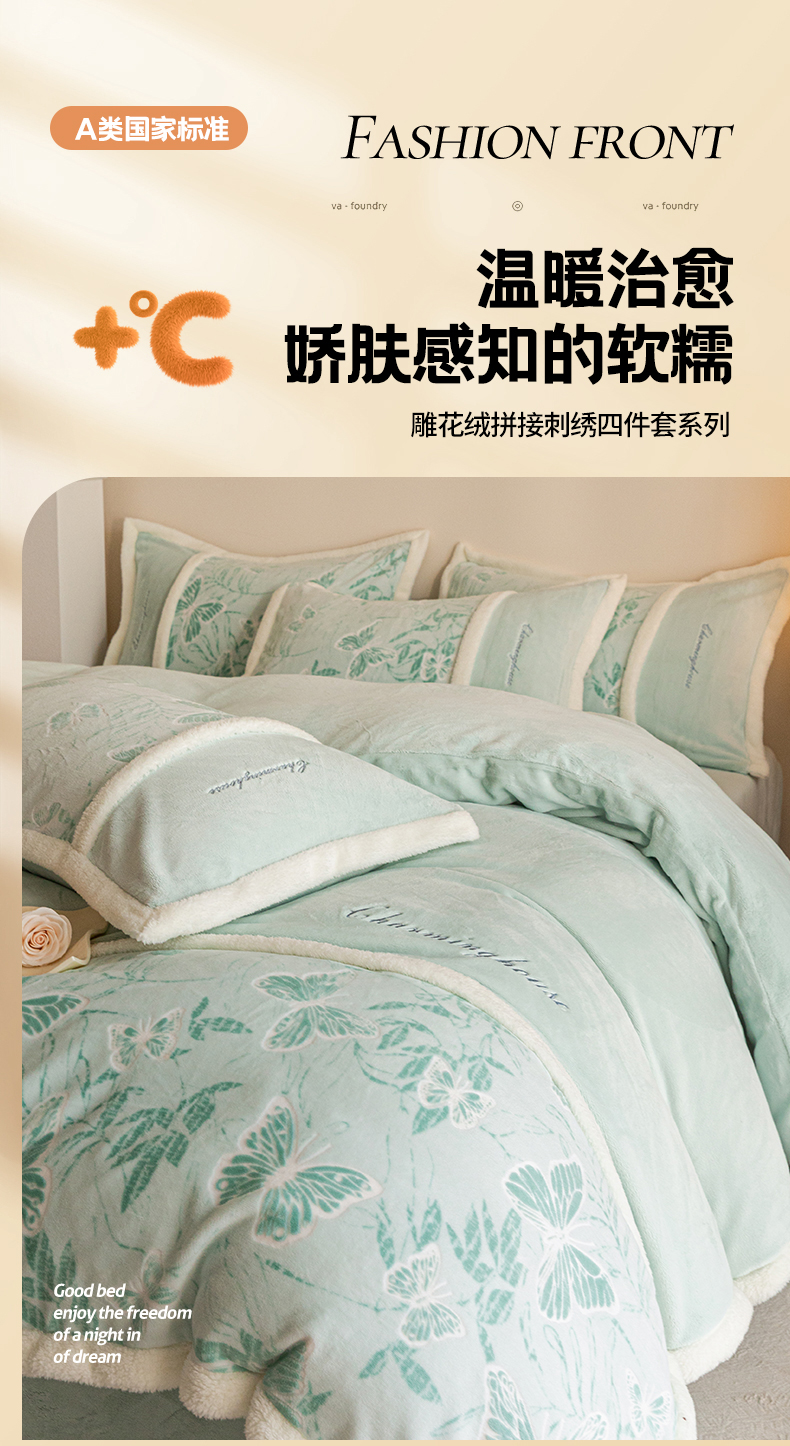 (总)遇见家居生活馆 2025新款高克重雕花绒拼接刺绣四件套系列-艾菲妮,蝴蝶-靓粉(浅),蝴蝶-靓粉(深),蝴蝶-清澈蓝,蝴蝶-天空蓝,蝴蝶-香槟色,玫瑰-靓粉(浅),玫瑰-靓粉(深),玫瑰-清澈蓝,玫瑰-香草灰,玫瑰-月白绿