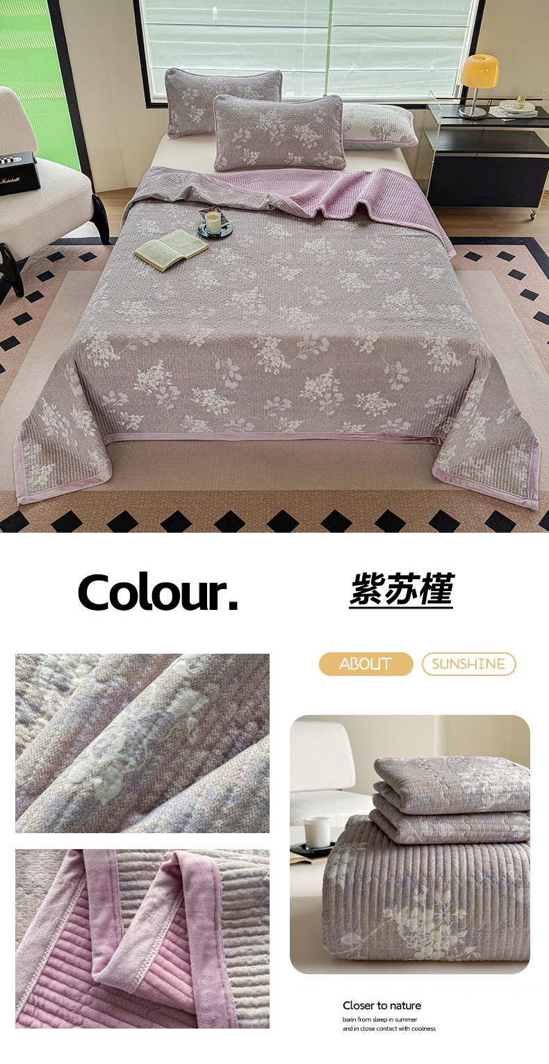 (总)卢赛尔 2025新款印花加厚原麻宝宝绒双拼保暖床盖款三件套