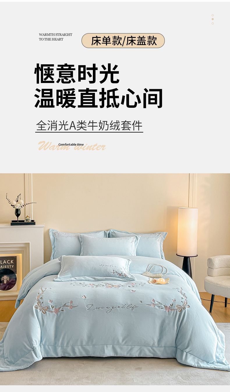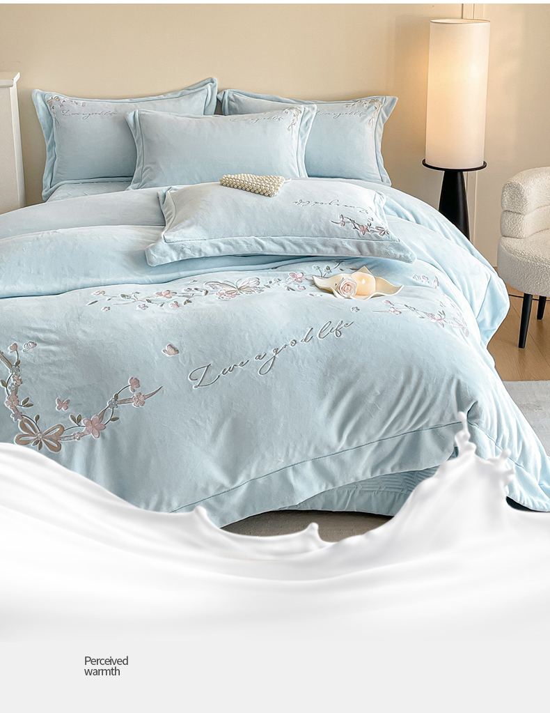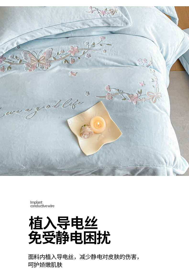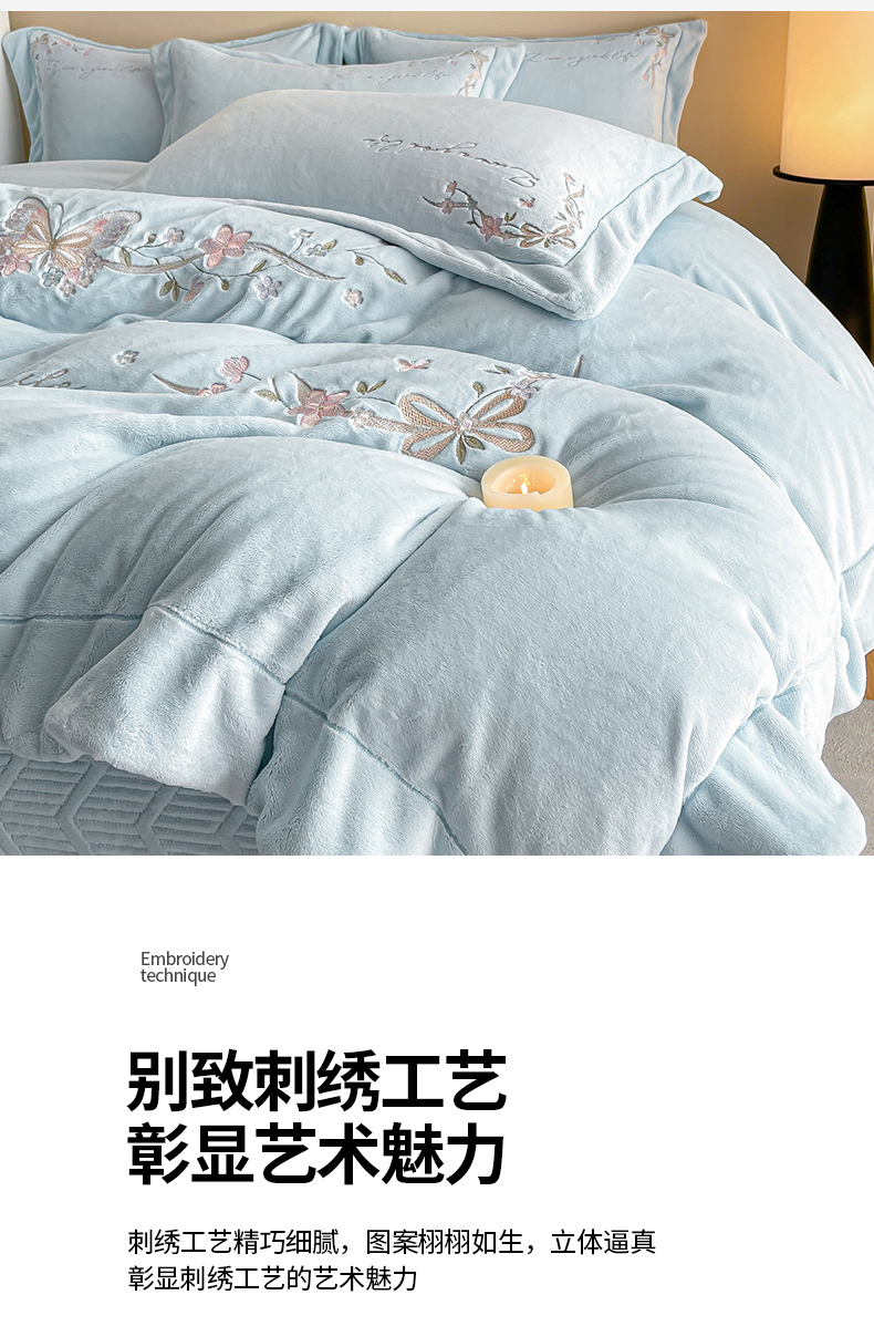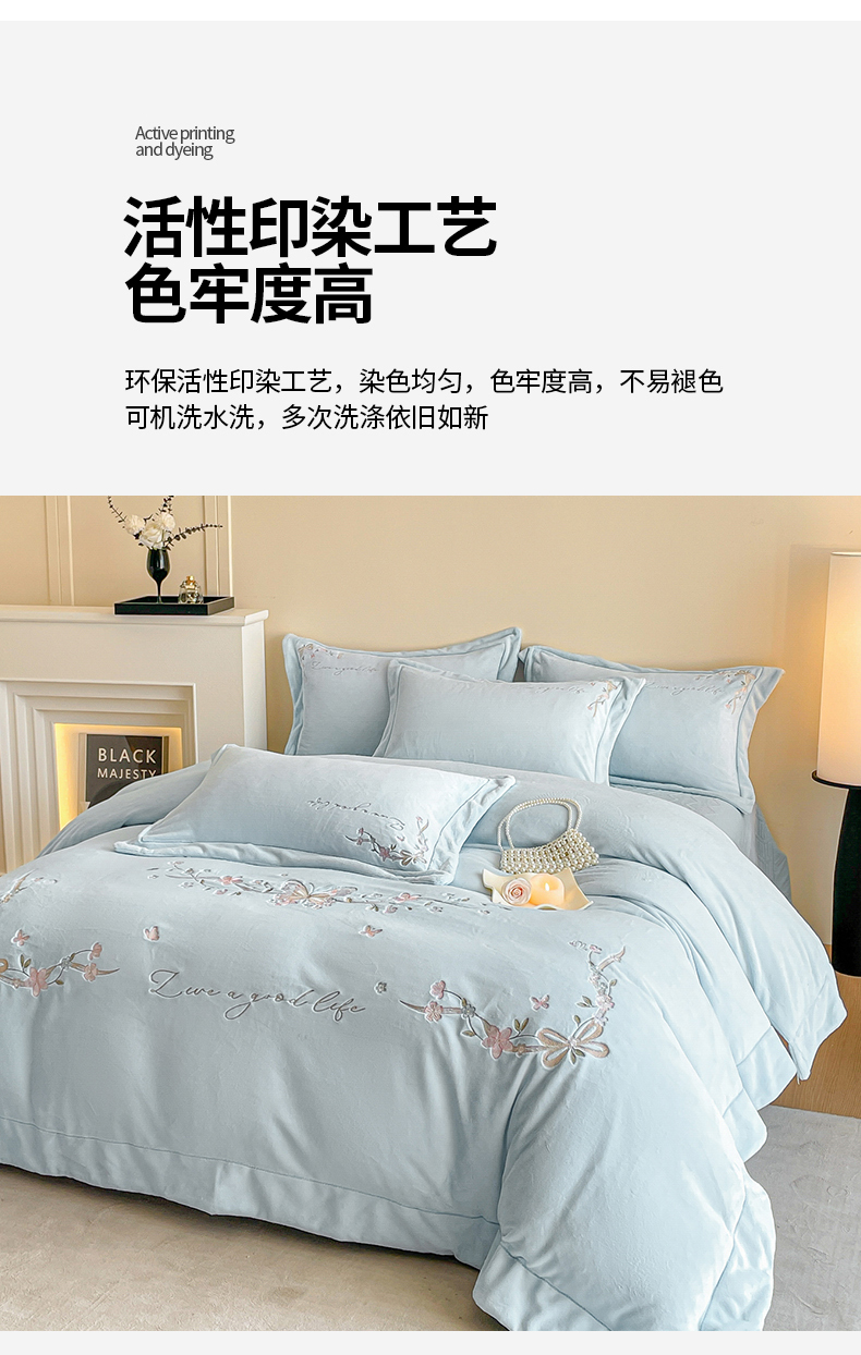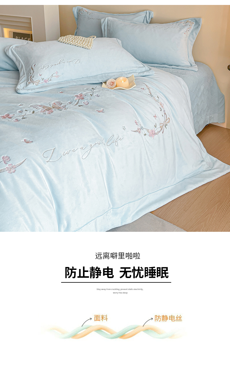 当前位置: 91家纺网 > 商品网购 > 床品套件 > 四件套 > 牛奶绒四件套 > 新方向 2025新款全消光A类刺绣牛奶绒四件套-蝶恋花 蝶恋花-星月蓝