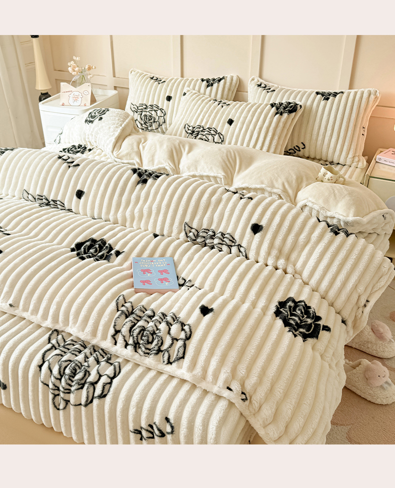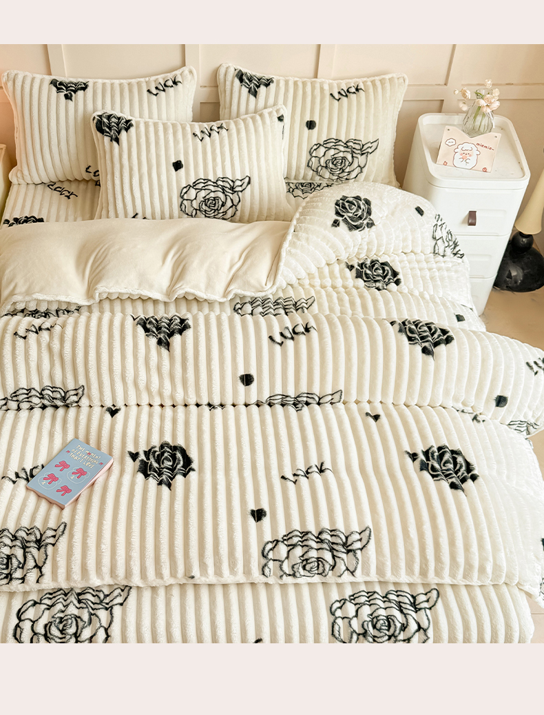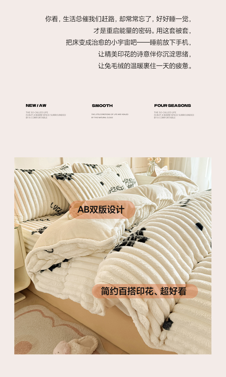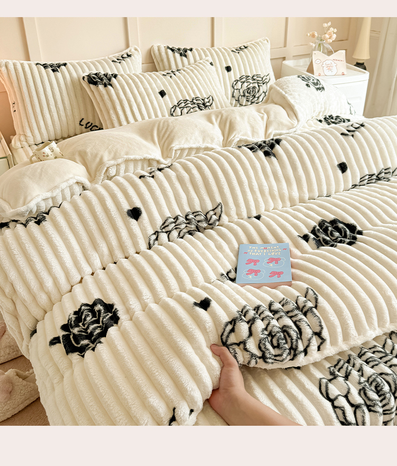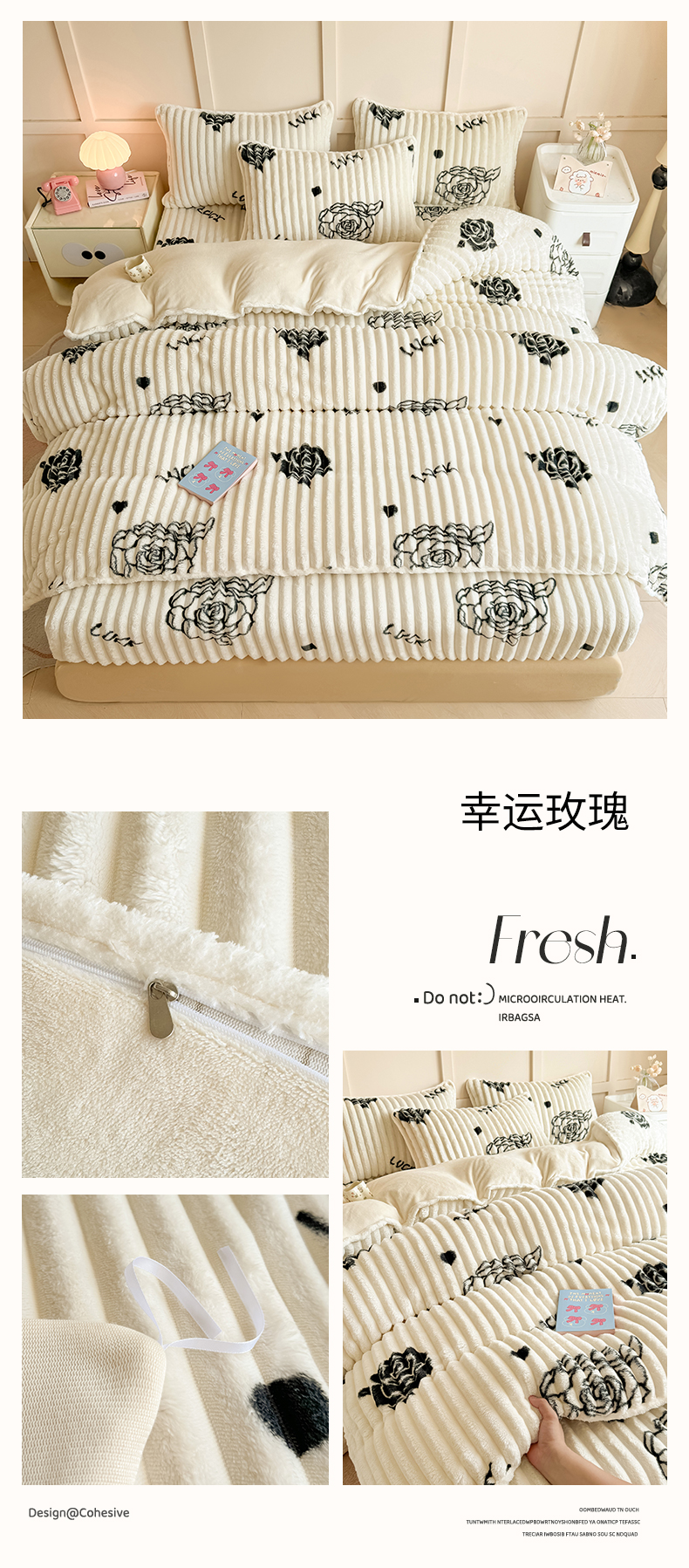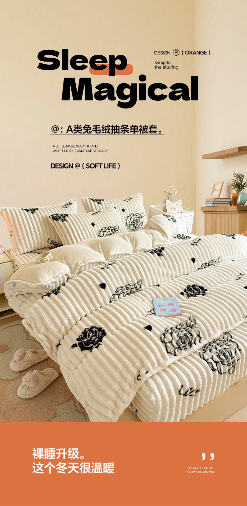 商品名称:眠势力 2025新款兔兔绒抽条印花被套兔毛绒加厚保暖被罩 幸运玫瑰
