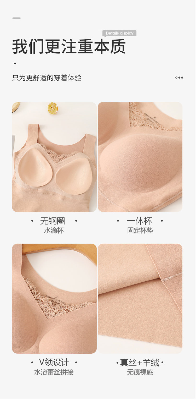 (总)蚕云阁蚕丝家居 2025新款针织真丝鸡心镂空高弹力文胸,肤色,灰粉色,浅灰色