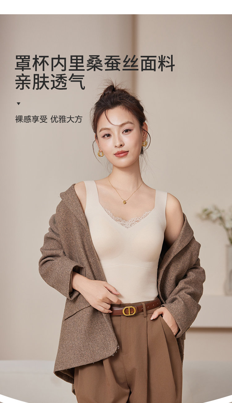 (总)蚕云阁蚕丝家居 2025新款真丝山羊绒一体式保暖背心,粉色,肤色,黑色