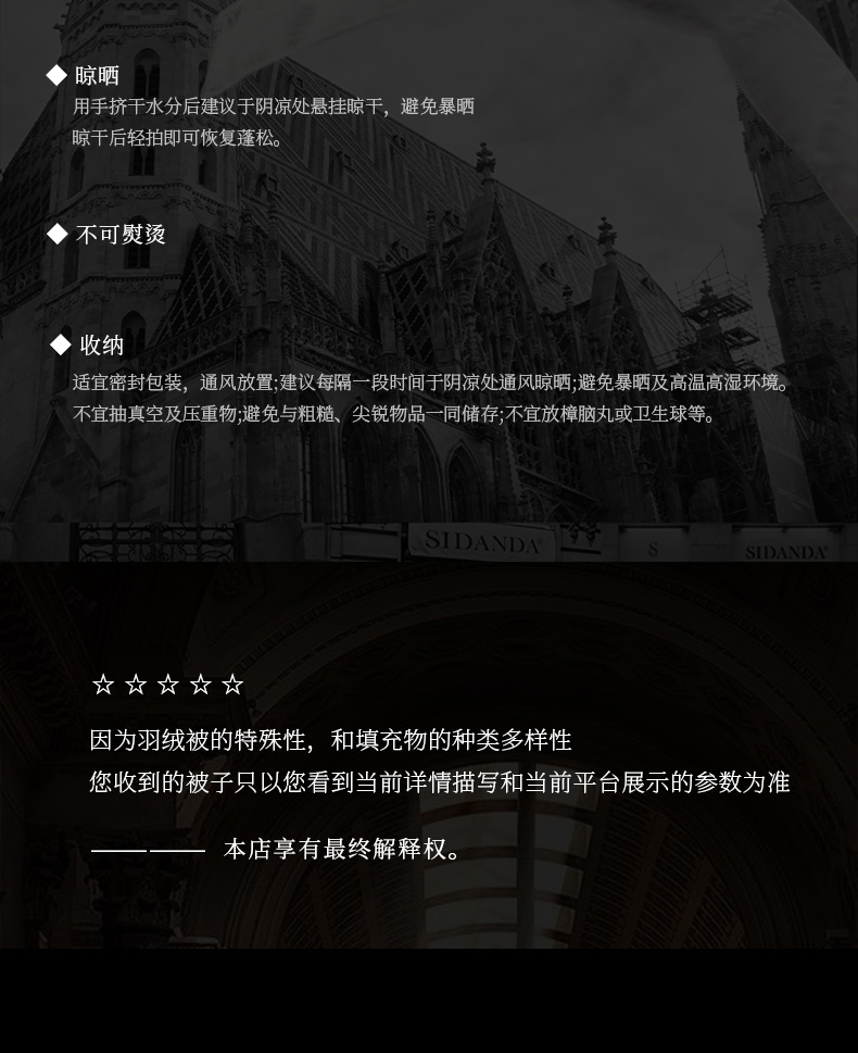 220x240cm填充1400克95白鹅绒 冬被 | ¥2250.00 |