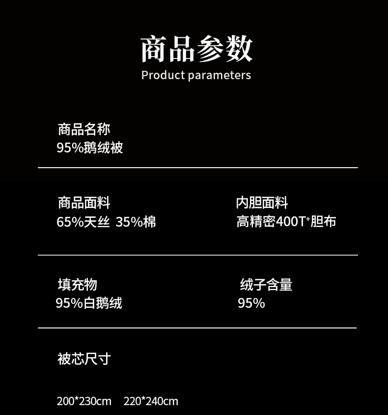 200x230cm填充1100克95白鹅绒 秋冬被 | ¥1860.00 |