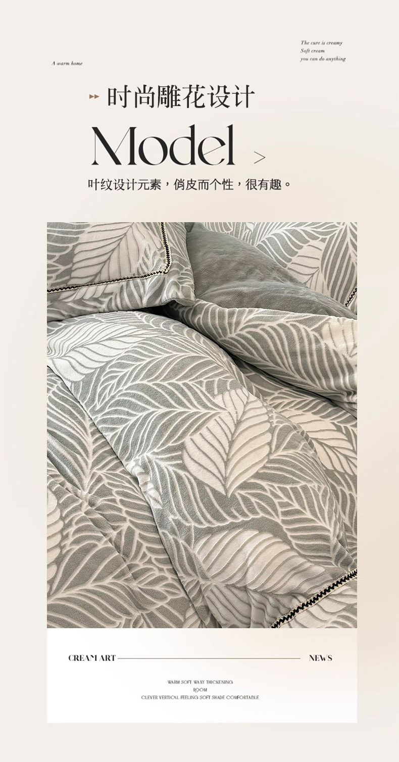 商品名称:好阁家纺 2025新款轻奢织带雕花牛奶绒四件套 叶叶情深-卡其