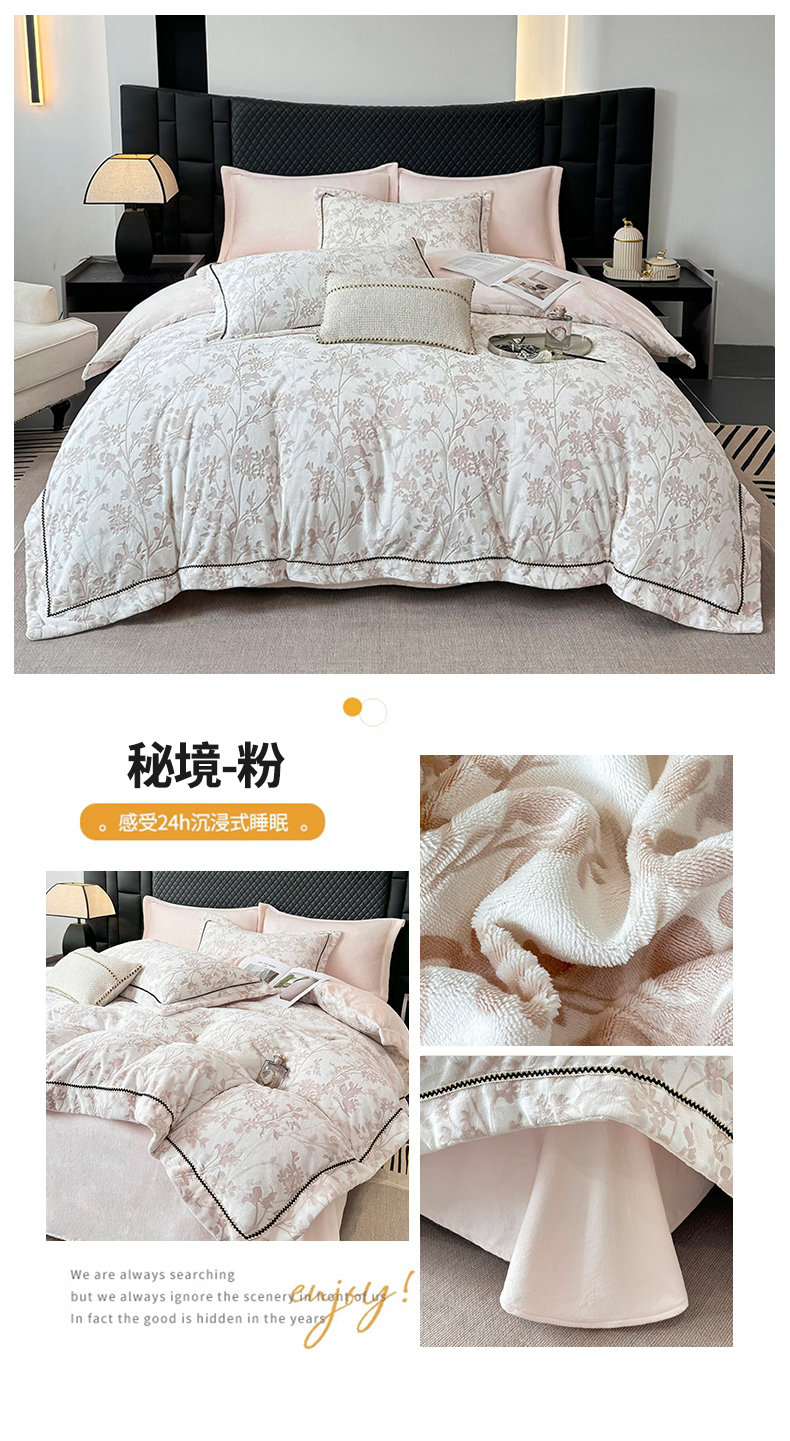 (总)好阁家纺 2025新款轻奢织带雕花牛奶绒四件套,蝴蝶飞飞-粉,蝴蝶飞飞-灰,玫瑰庄园-粉,玫瑰庄园-灰,秘境-粉,秘境-灰,叶叶情深-灰,叶叶情深-卡其