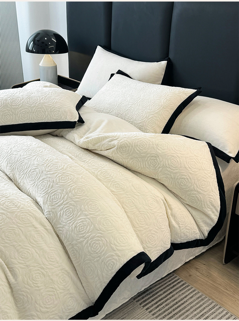 好阁家纺 2025新款极简小香风雕花牛奶绒黑边四件套-风格二 亚历山大