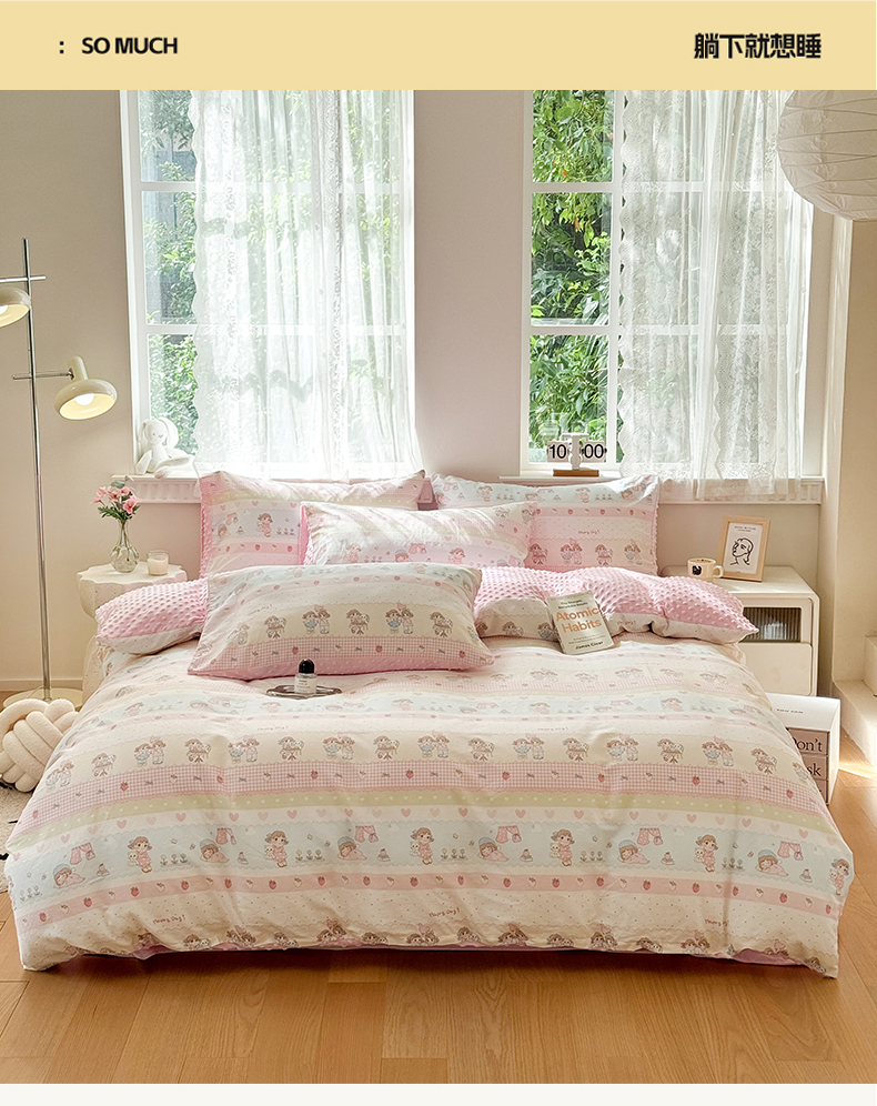 当前位置: 91家纺网 > 商品网购 > 床品套件 > 四件套 > 牛奶绒四件套 > 雯雨家纺 2025新款ab版全棉豆豆绒婴儿绒牛奶绒四件套 集美卧室
