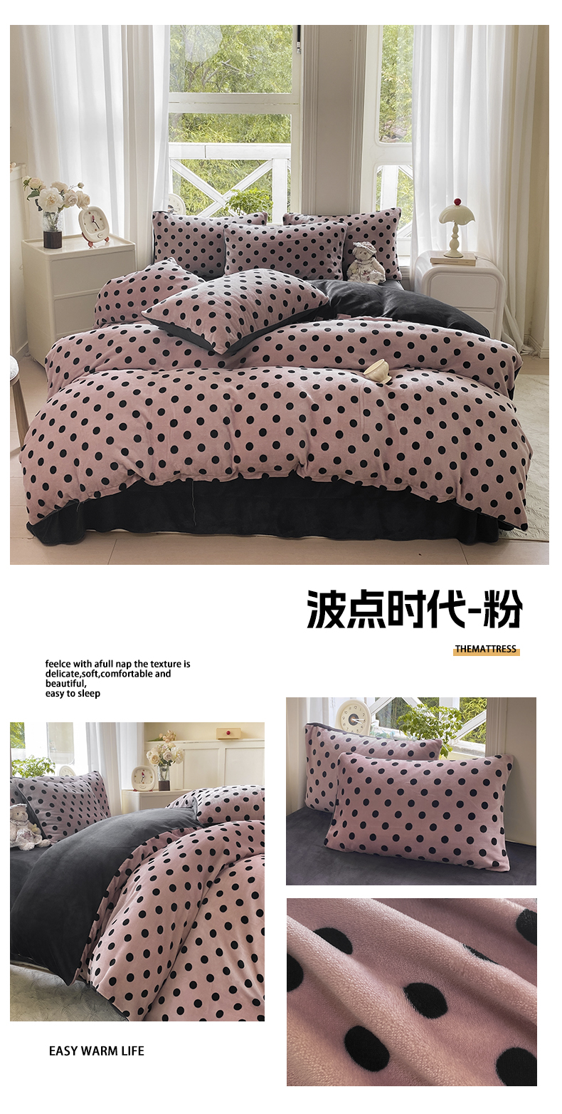 商品名称:元禾家纺 2025新款牛奶绒印花四件套 波点玫红