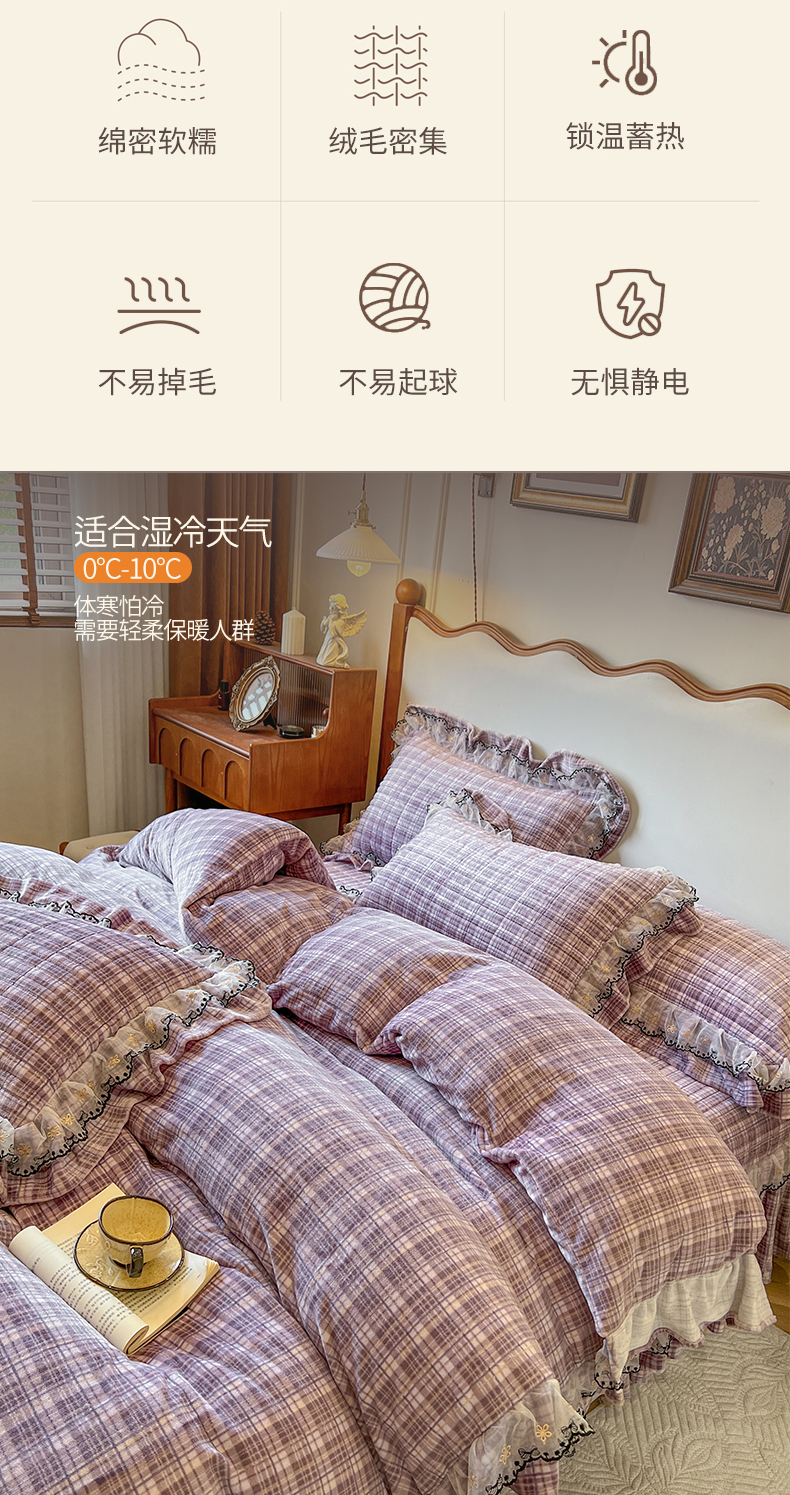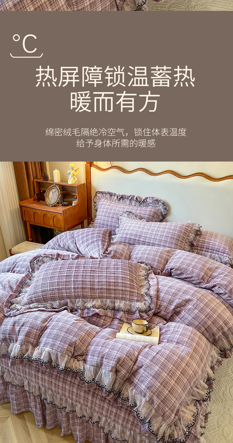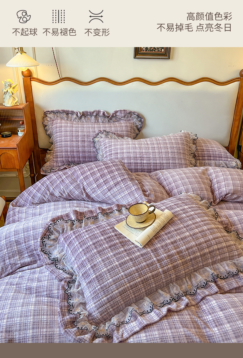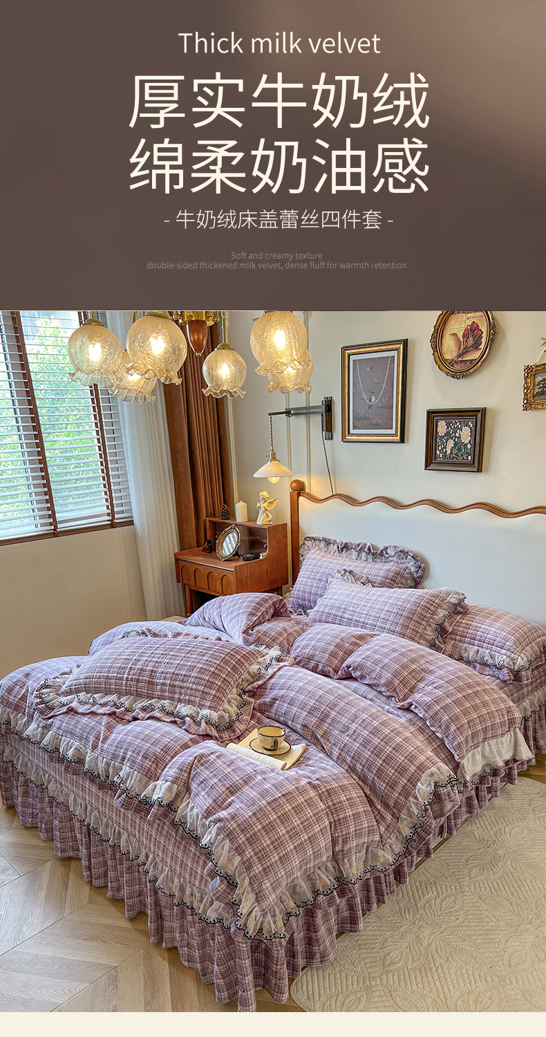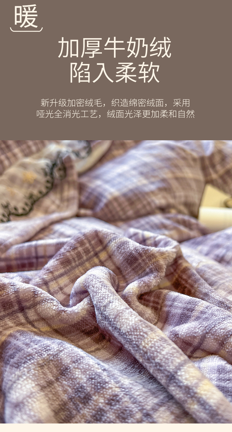 当前位置: 91家纺网 > 商品网购 > 床品套件 > 四件套 > 牛奶绒四件套 > 网红馆(ck家纺) 2025新款高克重牛奶绒床盖四件套-米娅 米娅-紫