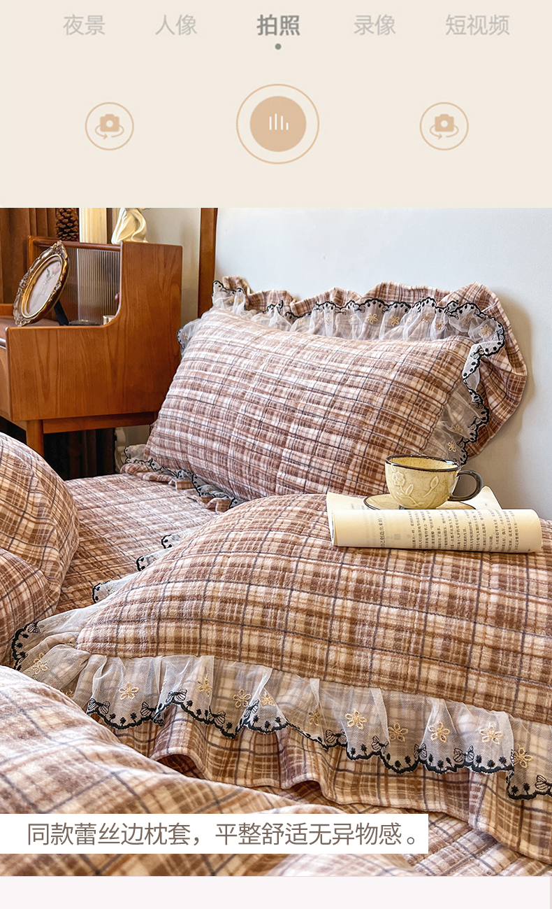 (总)网红馆(ck家纺) 2026新款全棉蕾丝花边床裙款床笠晨暮花间系列,绯红,粉色,麦绿,米色,浅紫,雾蓝
