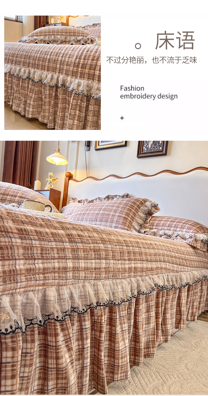 • 91家纺网 家纺一手货源 找家纺 (总)网红馆(ck家纺) 2026新款色织蕾丝边床裙款床笠,宝石蓝,黛绿色,浪漫紫,奶茶色,石青,香妃粉,烟熏灰