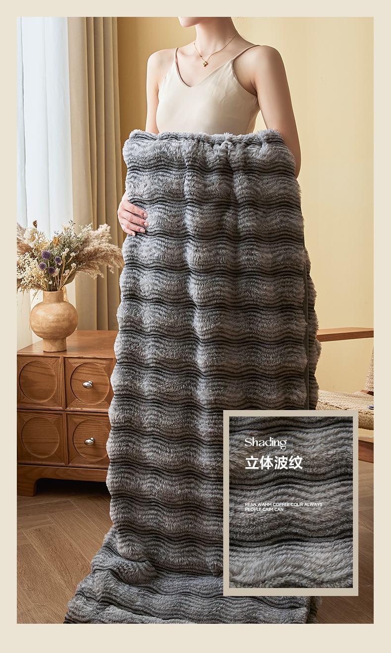 欧邦 2025新款轻奢波纹加厚皮草兔毛绒双层毯 波纹-浅灰