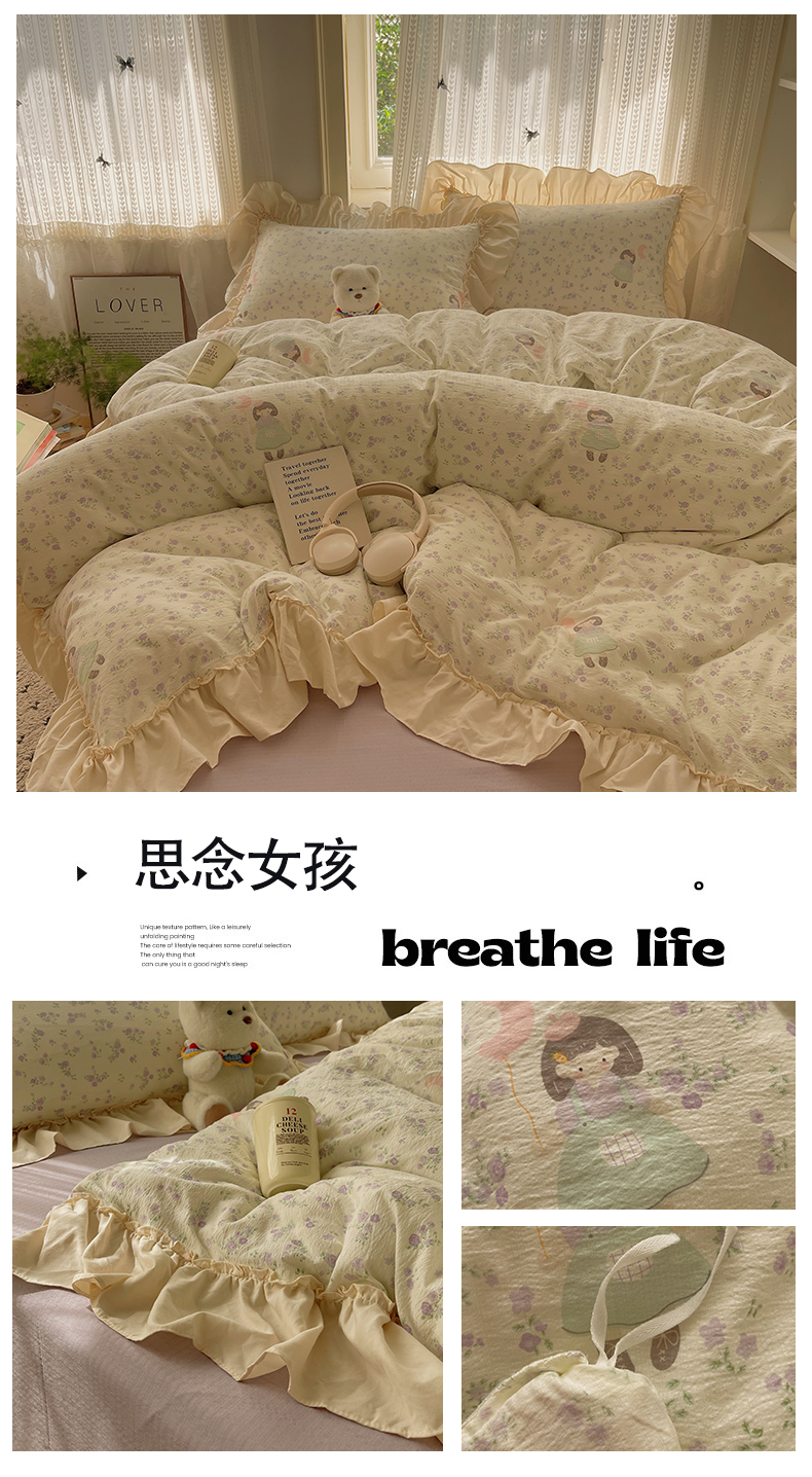 当前位置: 91家纺网 > 商品网购 > 床品套件 > 四件套 > 其它四件套 > 初念 2025新款法式花边款小碎花云感双层纱系列四件套-曼塔(小红书推荐)提供买家秀 曼塔-丛林女孩