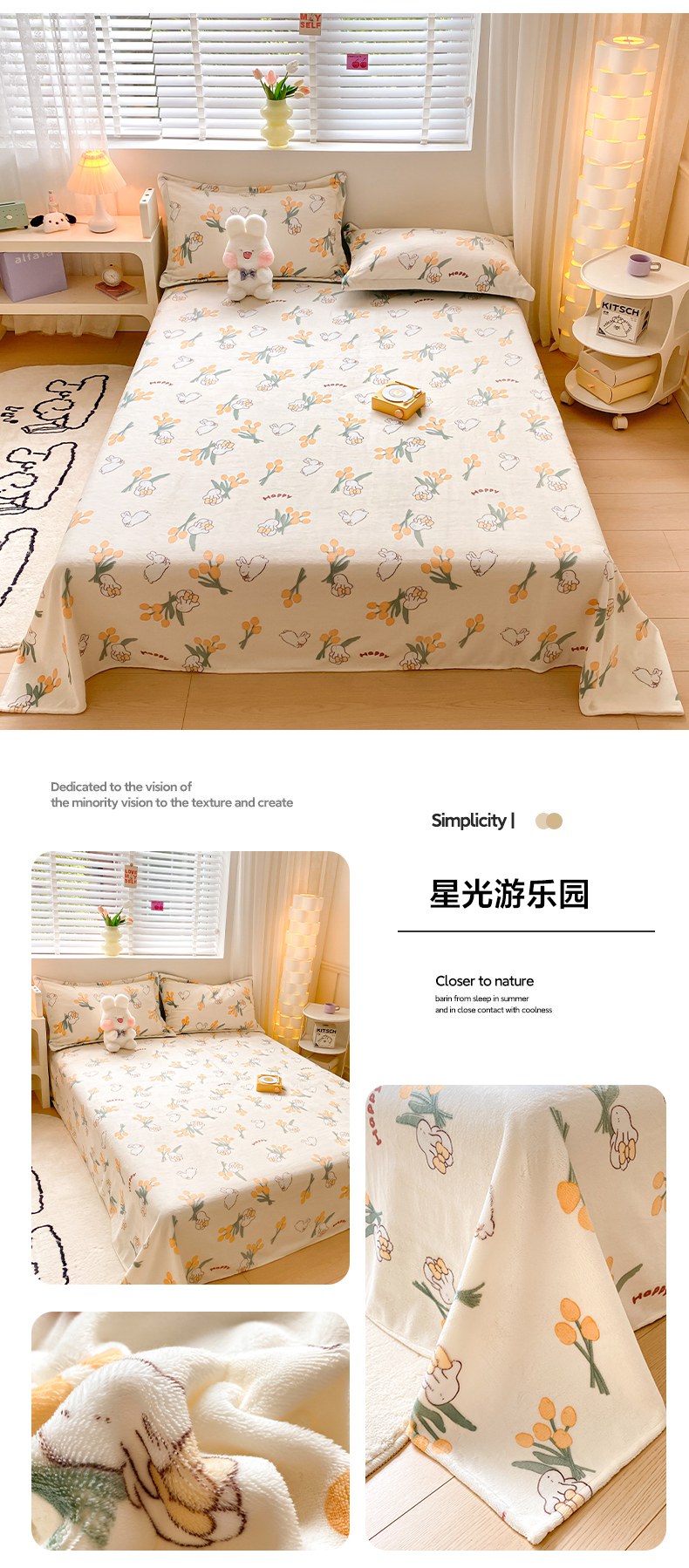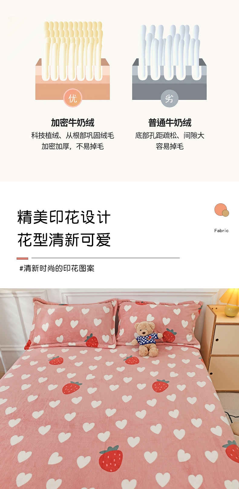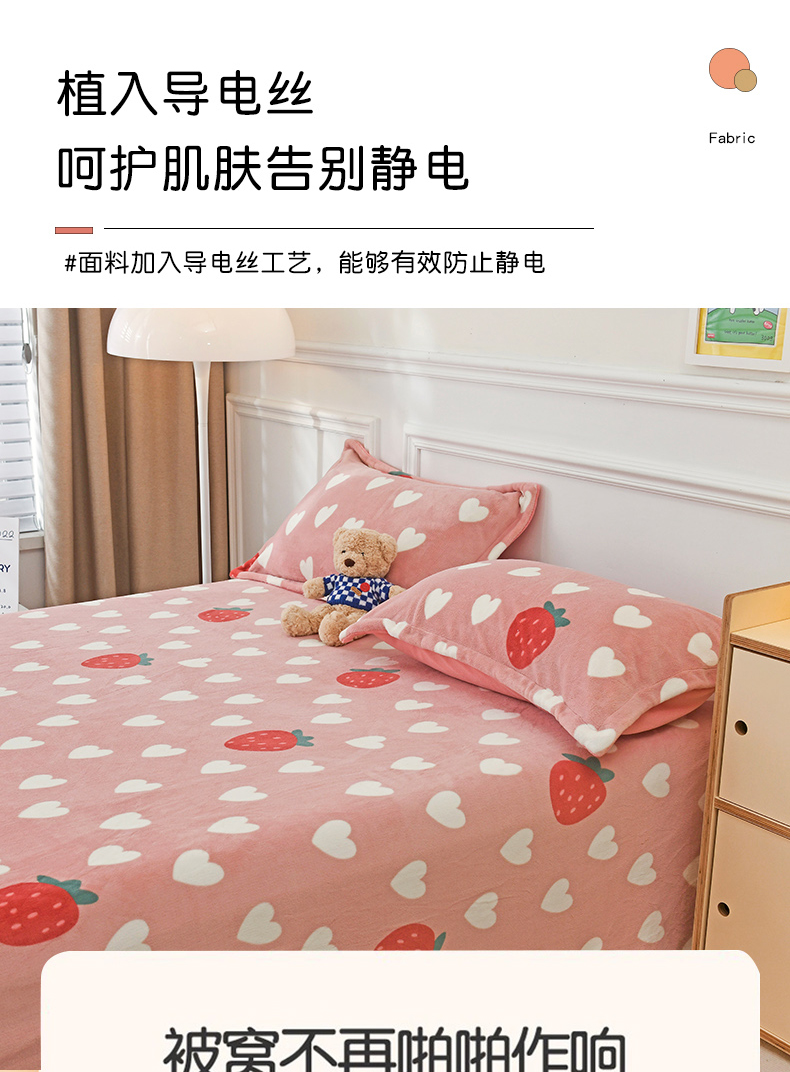 商品名称:金盛纺 2025新款高克重牛奶绒印花系列单床单(可定制) 桃心草莓