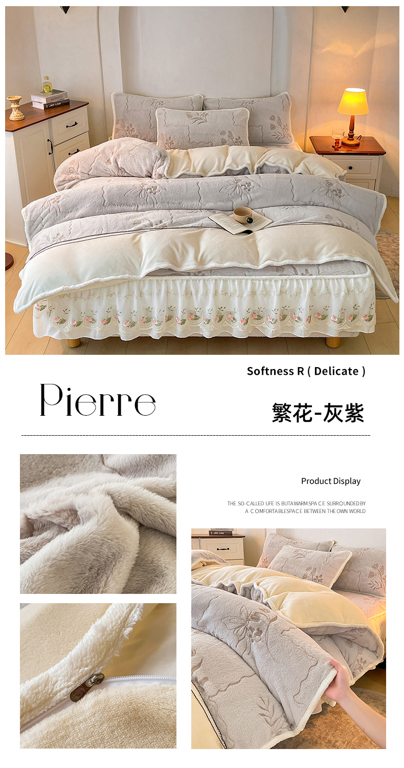 (总)眠势力 2025新款兔毛绒雕花四件套冬季兔兔绒加绒被套床裙款床笠套件带刺绣花边,繁花-沁粉,繁花-灰紫,繁花-绒绿,繁花-霜兰,若溪-灰紫,若溪-沁粉,若溪-绒绿,若溪-霜兰