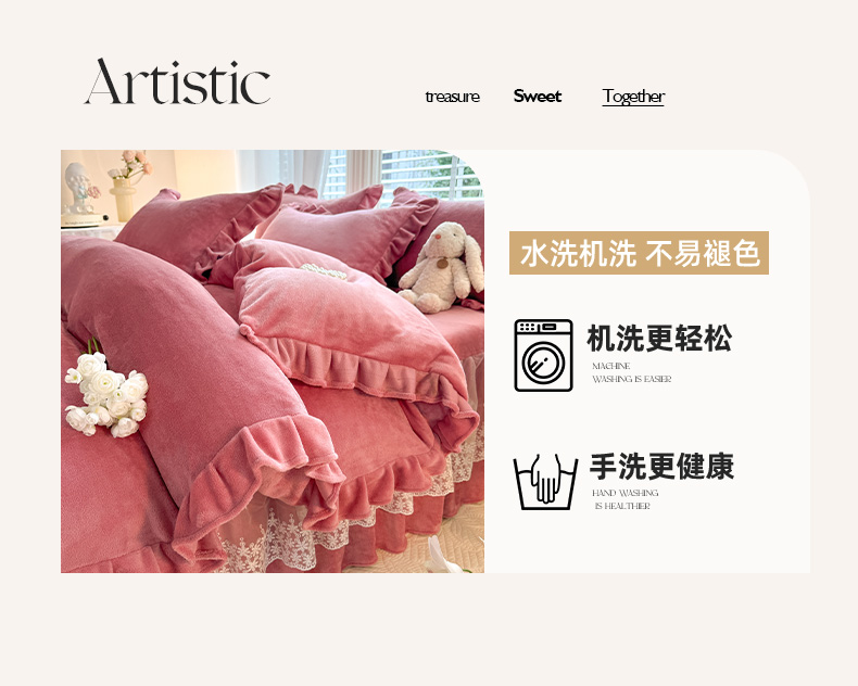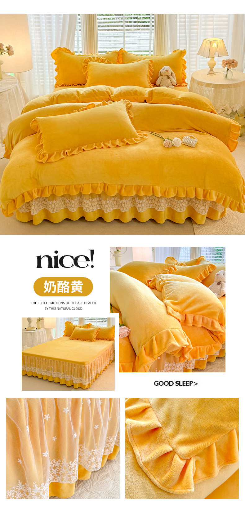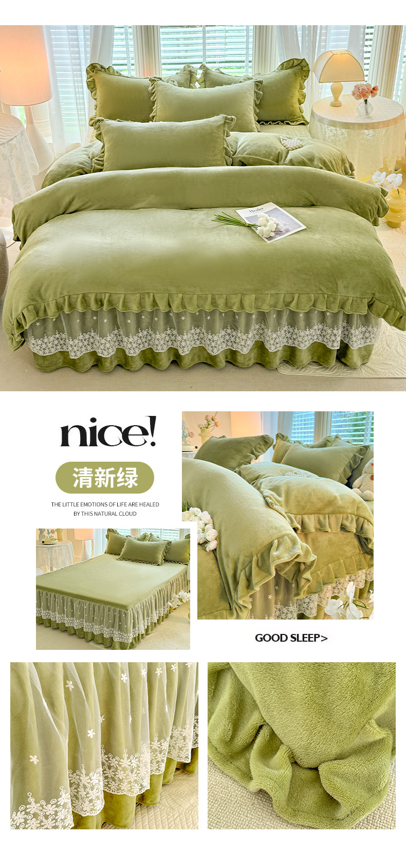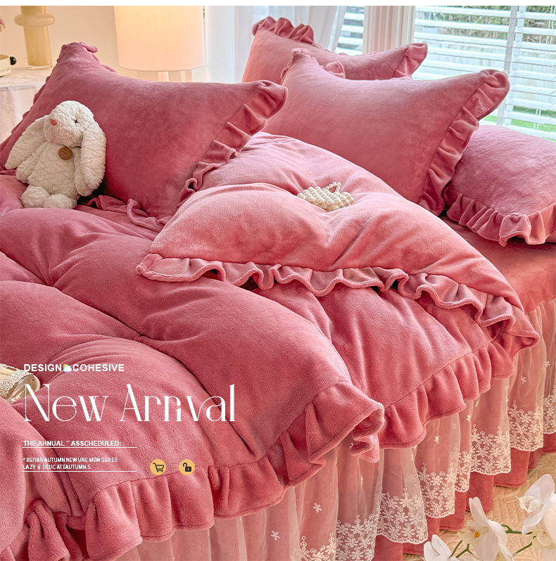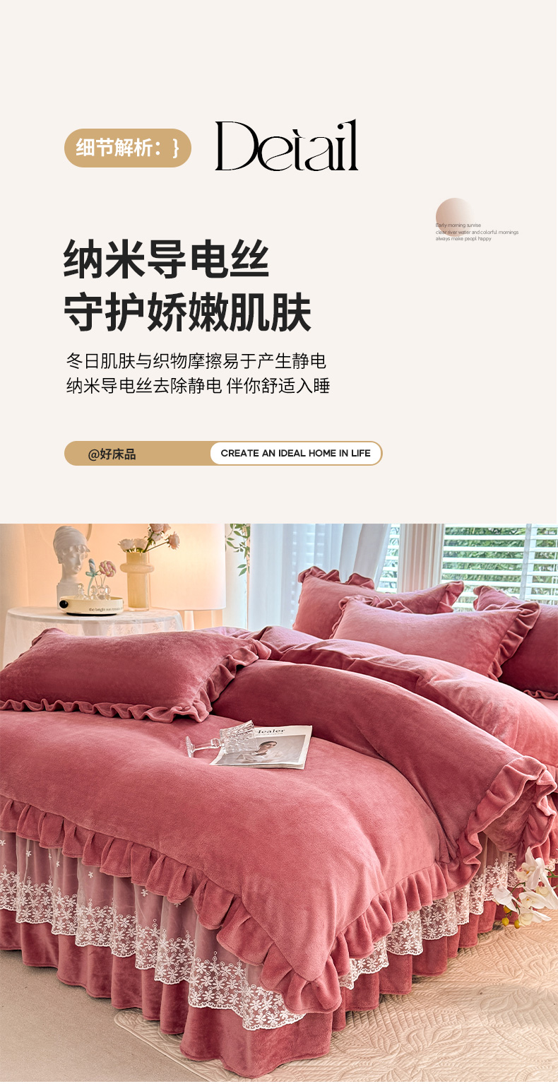 当前位置: 91家纺网 > 商品网购 > 床品套件 > 四件套 > 牛奶绒四件套 > 优家居 2025秋冬高克重牛奶绒床裙款四件套纯色蕾丝边花边刺绣法式公主风床裙款被套 浅豆沙