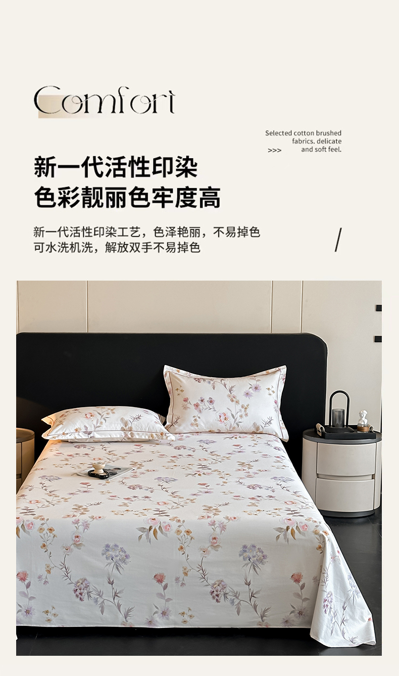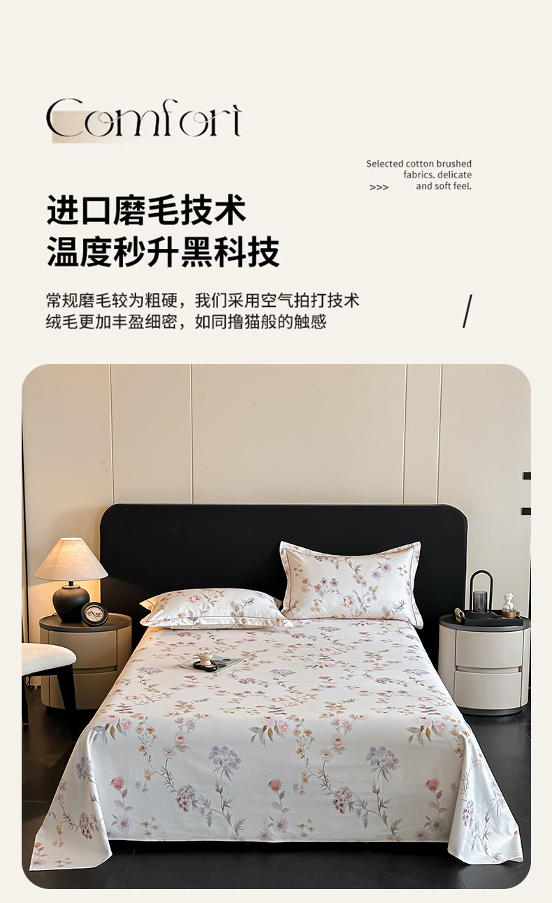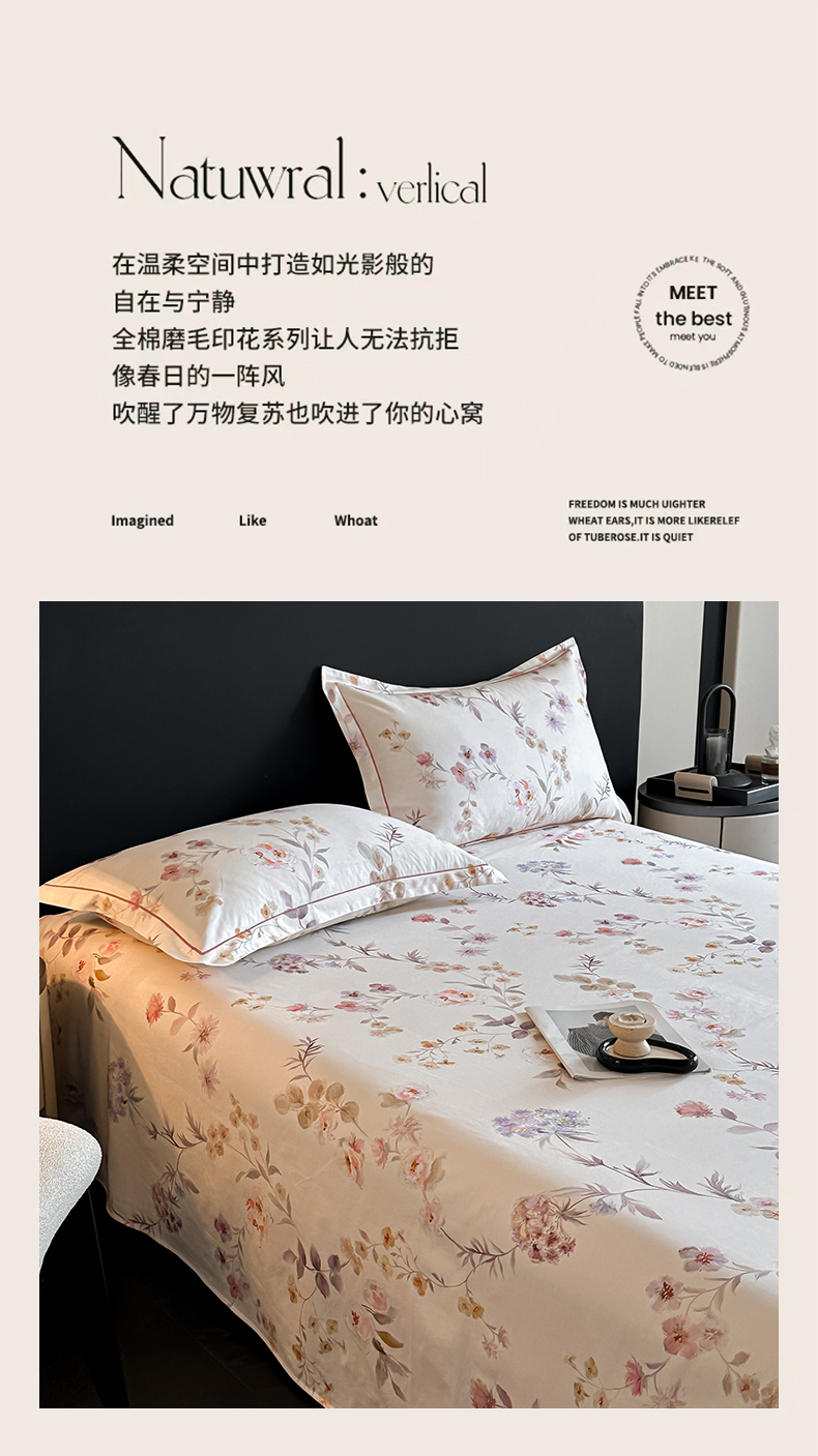 商品名称:大柏树 2025新款亲肤舒适全棉纯棉磨单床单 床单单件 初茅米