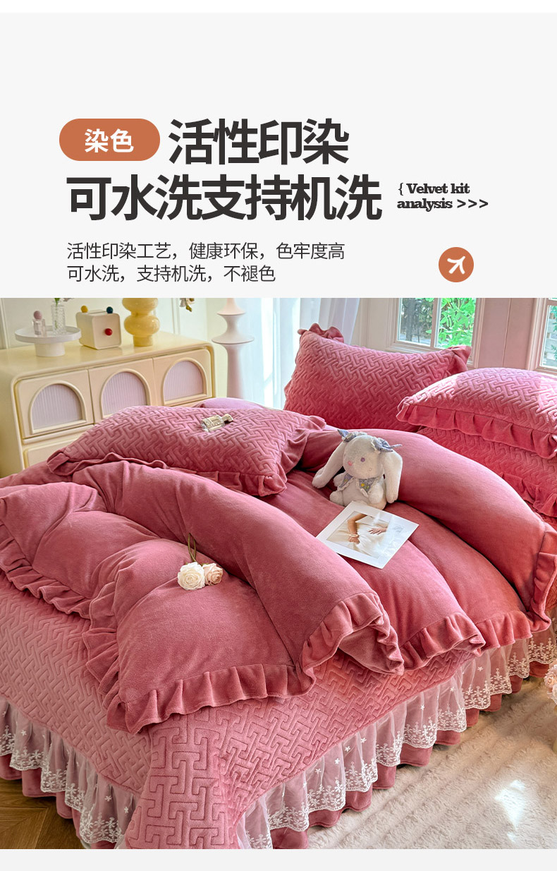 当前位置: 91家纺网 > 商品网购 > 床品套件 > 四件套 > 牛奶绒四件套 > 优家居 2025秋冬高克重牛奶绒夹棉床盖四件套纯色蕾丝边花边刺绣法式公主风床裙款被套床罩夹棉床裙 浅豆沙