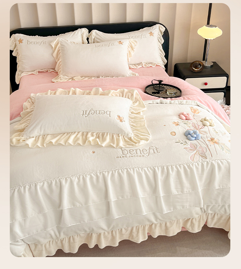 (总)爱家(原缔乐家纺) 2025新款A类高克重牛奶绒立体花刺绣四件套-花蜜,花蜜-公主粉,花蜜-天空兰,花蜜-奶昔白,花蜜-梦幻紫