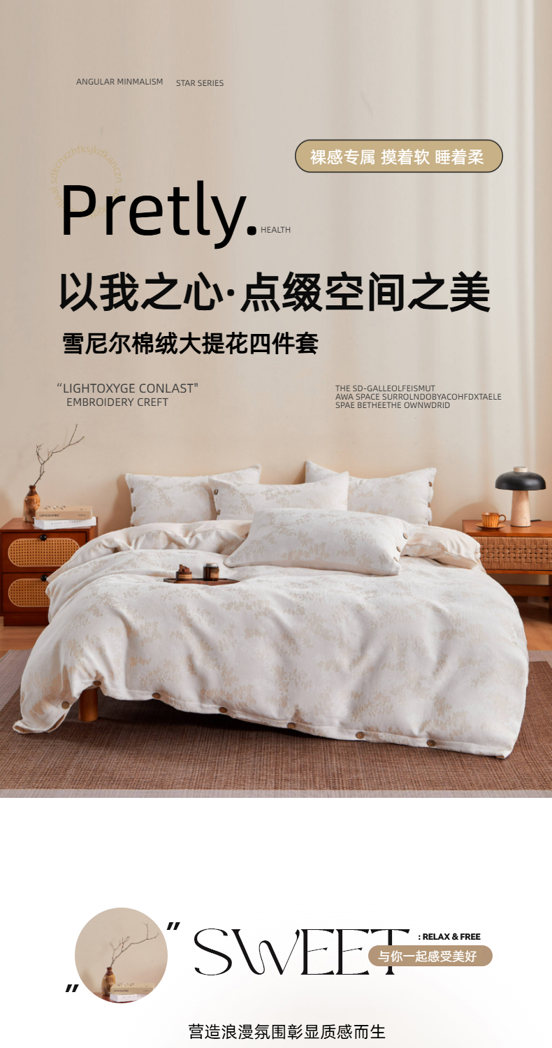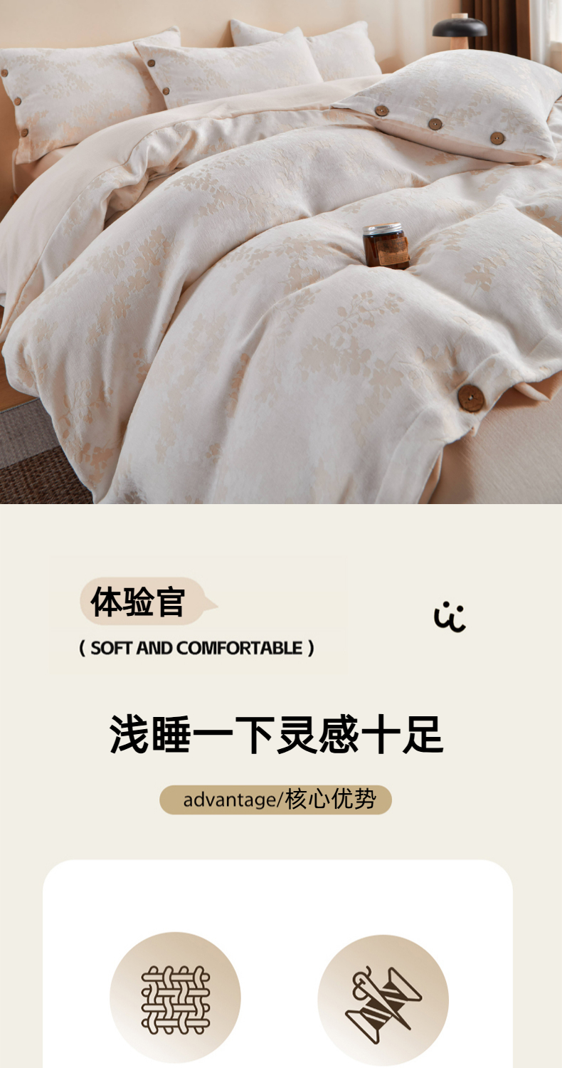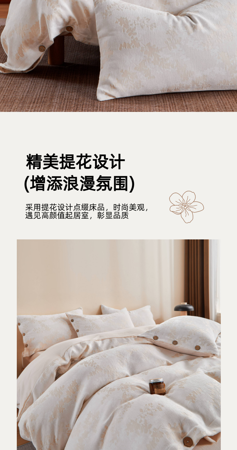 当前位置: 91家纺网 > 商品网购 > 床品套件 > 四件套 > 提花四件套 > 九沐良品 2025新款雪尼尔棉绒大提花四件套 樱花雨梦-小麦色