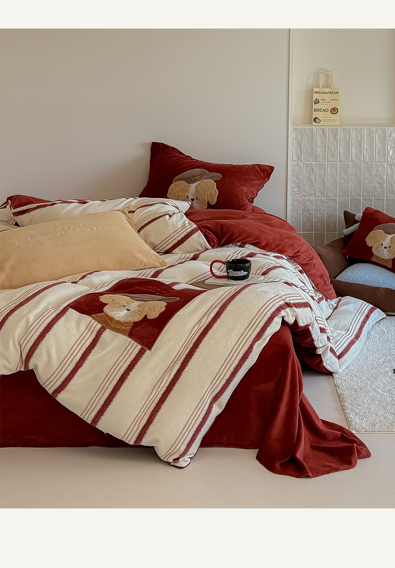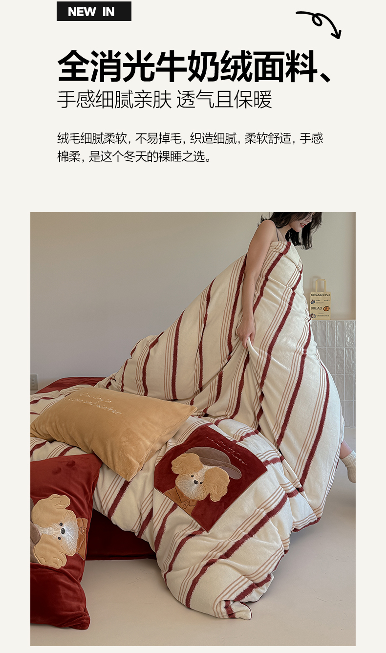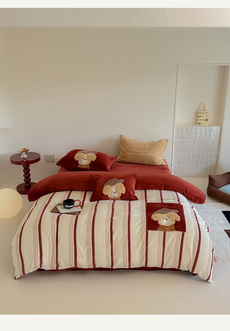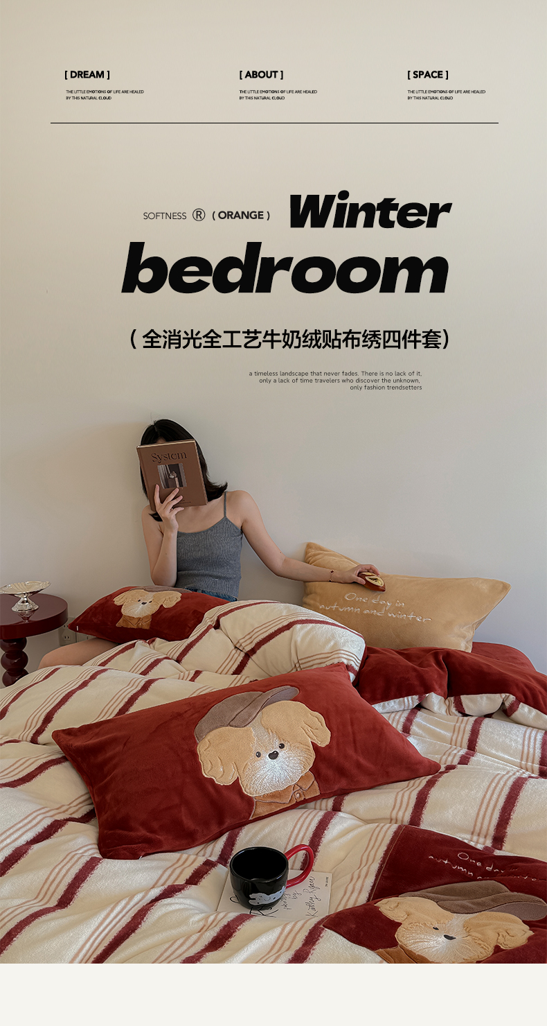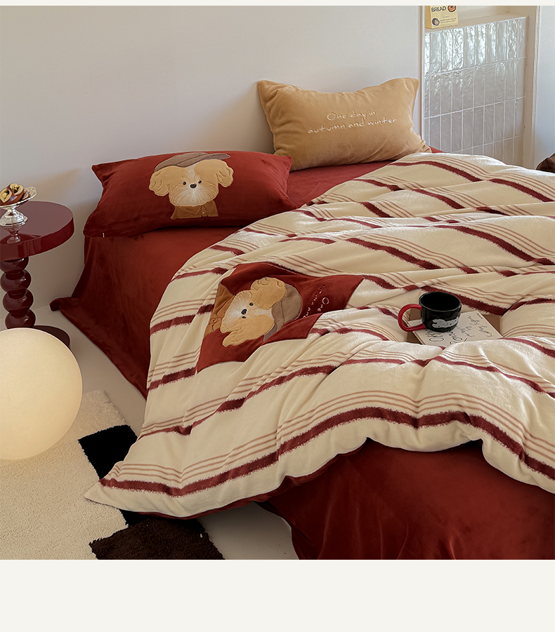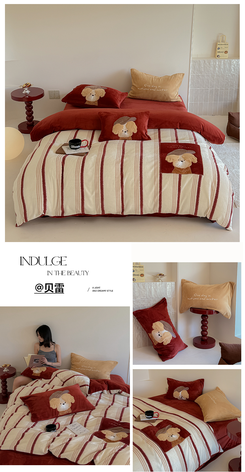当前位置: 91家纺网 > 商品网购 > 床品套件 > 四件套 > 牛奶绒四件套 > 简纯主义 2025新款260g全消光全工艺贴布绣花牛奶绒四件套-迷糊小狗系列 贝雷