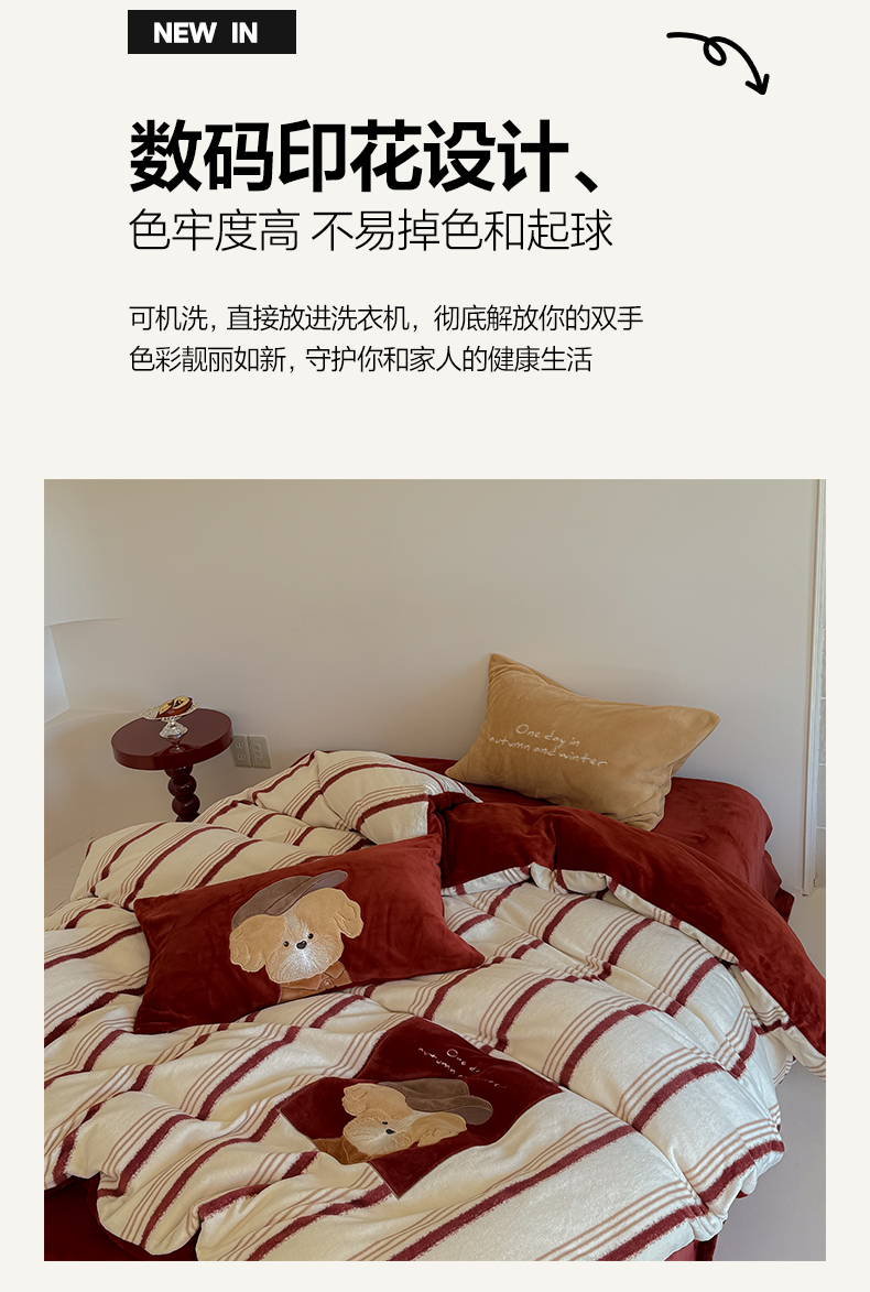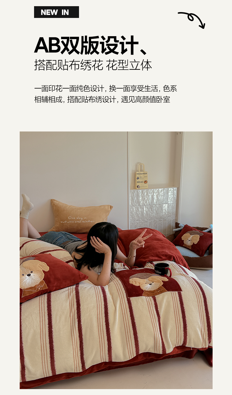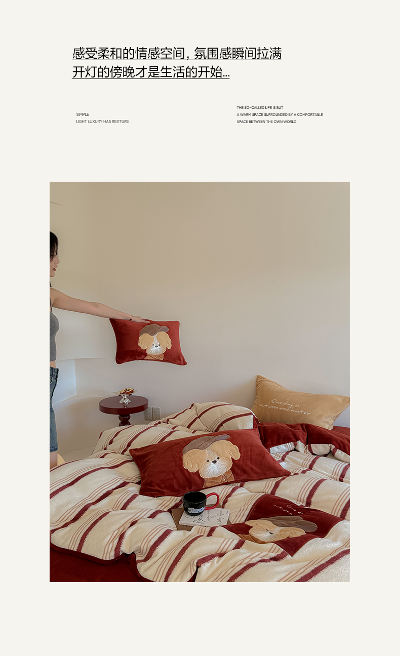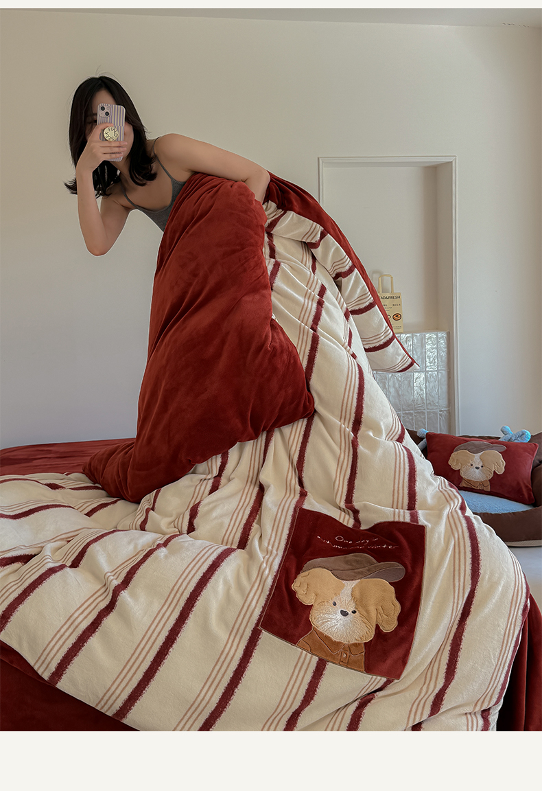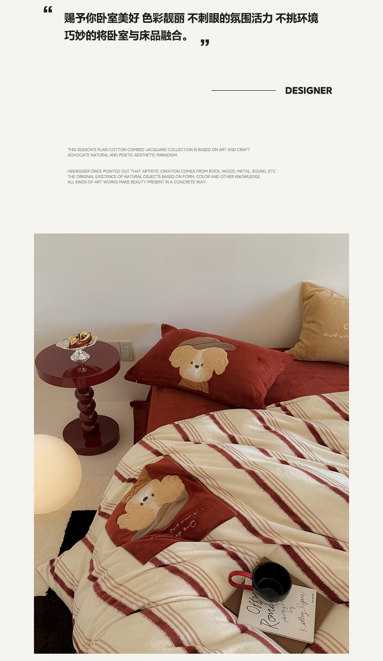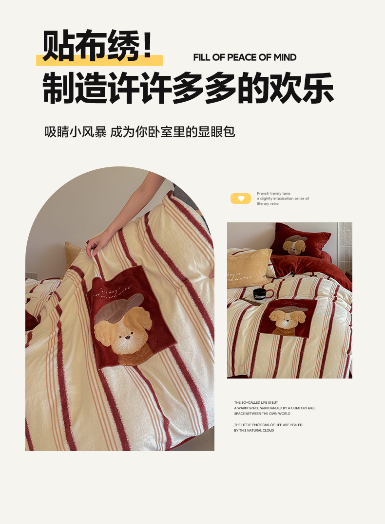 当前位置: 91家纺网 > 商品网购 > 床品套件 > 四件套 > 牛奶绒四件套 > 简纯主义 2025新款260g全消光全工艺贴布绣花牛奶绒四件套-迷糊小狗系列 贝雷