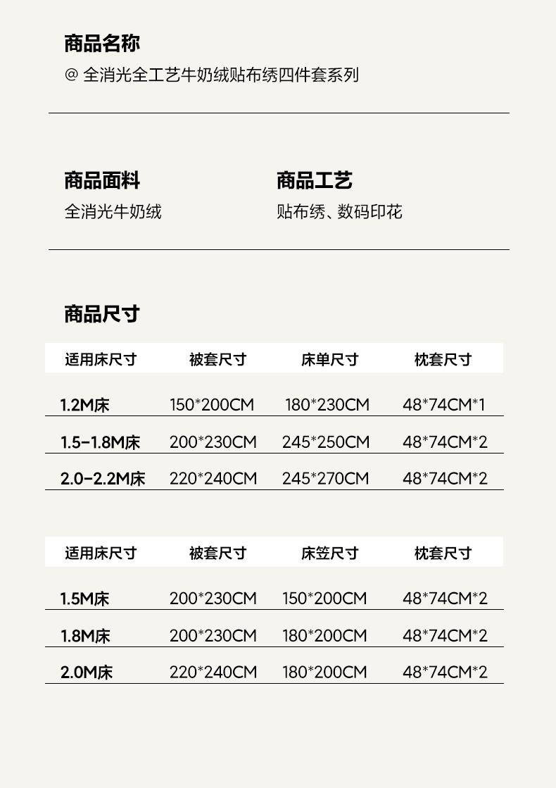 【床笠款】1.8四件套-被套200x230 | ¥200.00 |