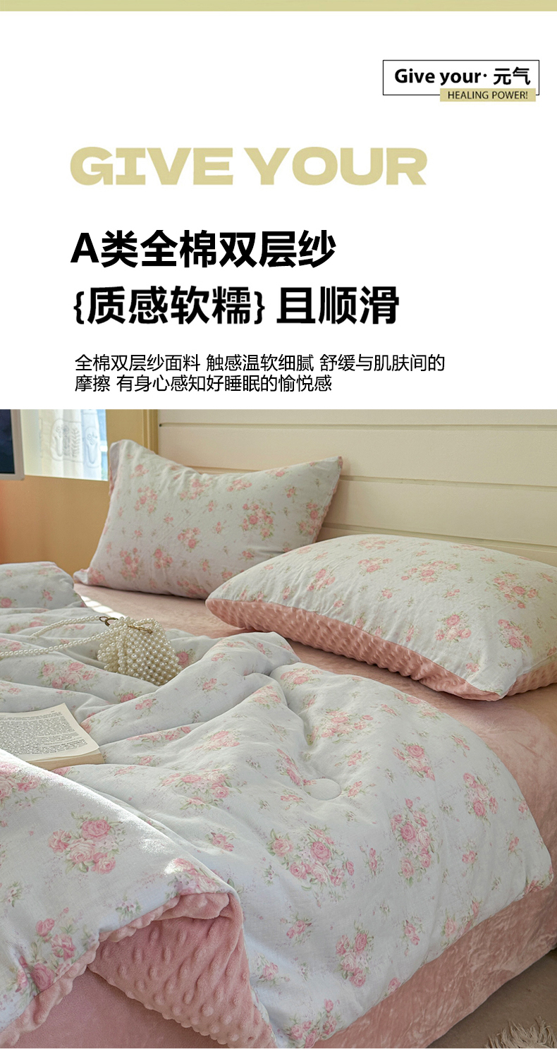 (总)麦伦家居 2025多功能床品全棉纯棉A类有氧双层纱+豆豆绒四件套荷叶边系列,组合图仅供展示不可下单,星星人,童梦木马,糖炒栗子,花田粉兔,白月光,桃夭夭,豹纹猫咪,空谷幽兰,晚秋,花棠,莫奈花园,蒂芙尼-粉,青芜,花样年华,椿野