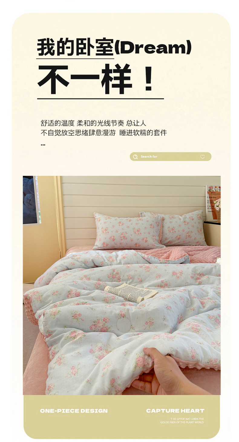 • 91家纺网 家纺一手货源 找家纺 (总)麦伦家居 2025多功能床品全棉纯棉A类有氧双层纱+豆豆绒四件套荷叶边系列,组合图仅供展示不可下单,星星人,童梦木马,糖炒栗子,花田粉兔,白月光,桃夭夭,豹纹猫咪,空谷幽兰,晚秋,花棠,莫奈花园,蒂芙尼-粉,青芜,花样年华,椿野