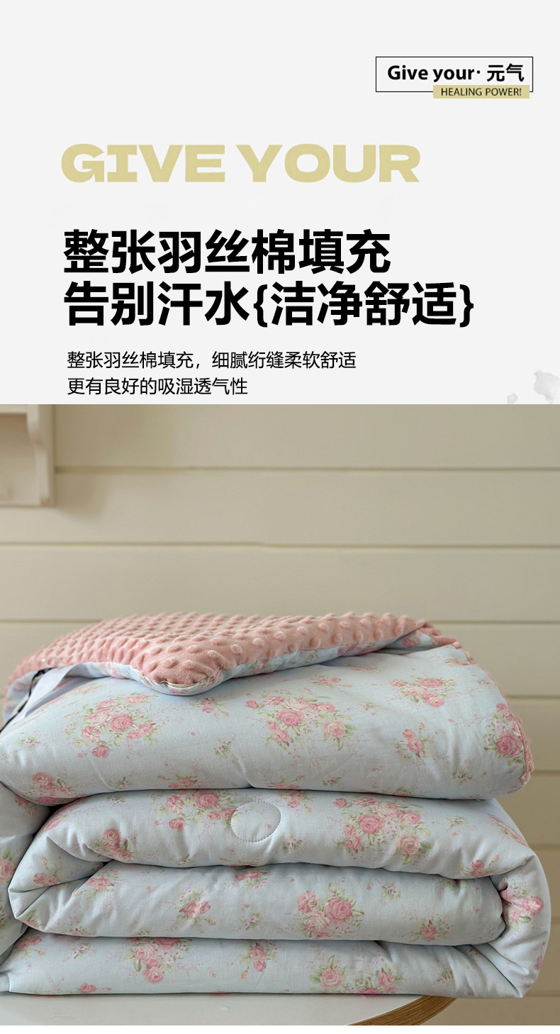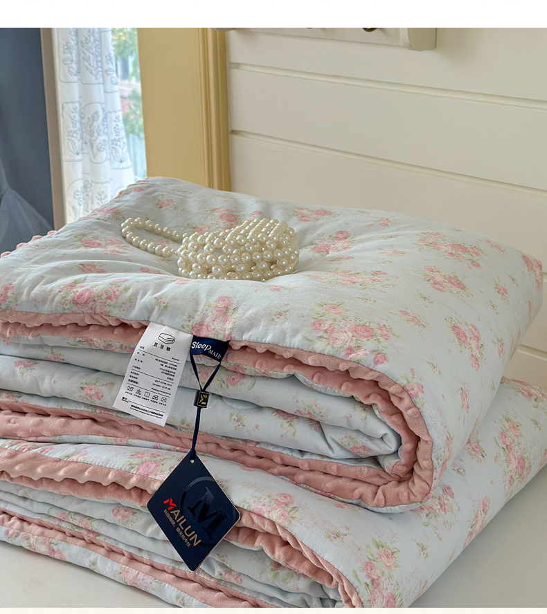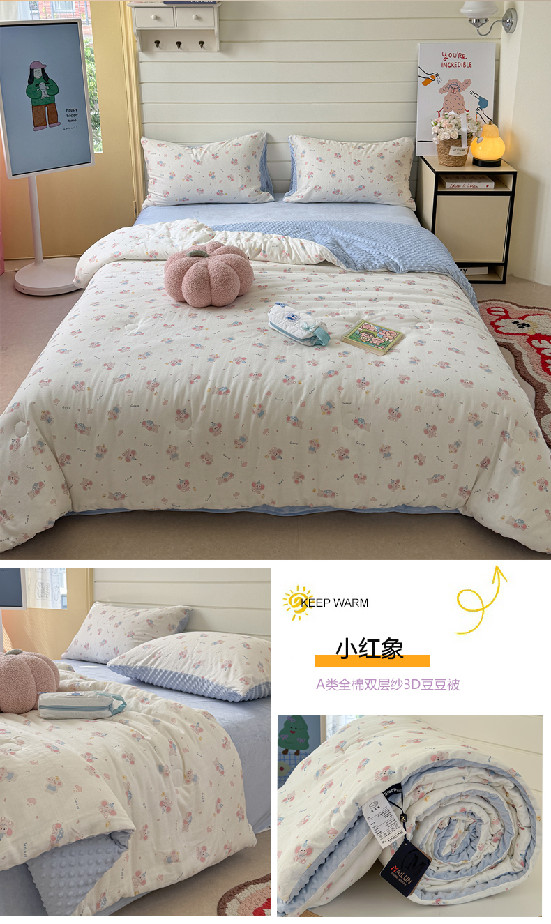 • 91家纺网 家纺一手货源 找家纺 麦伦家居 2025新款全棉双层纱3D豆豆被系列被子被芯(可配四件套) 蓝汐