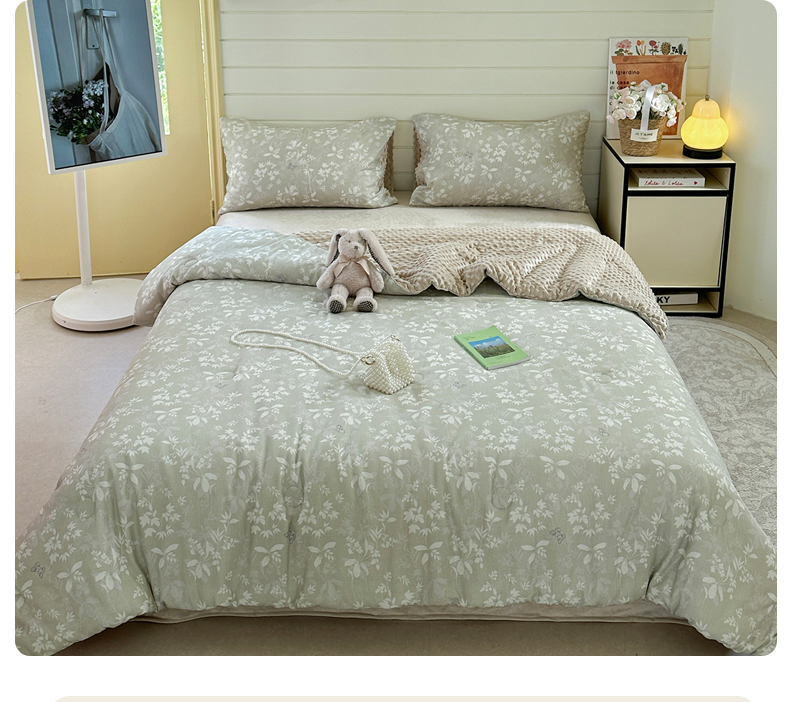 (总)麦伦家居 2025多功能床品全棉纯棉A类有氧双层纱+豆豆绒四件套荷叶边系列,组合图仅供展示不可下单,星星人,童梦木马,糖炒栗子,花田粉兔,白月光,桃夭夭,豹纹猫咪,空谷幽兰,晚秋,花棠,莫奈花园,蒂芙尼-粉,青芜,花样年华,椿野