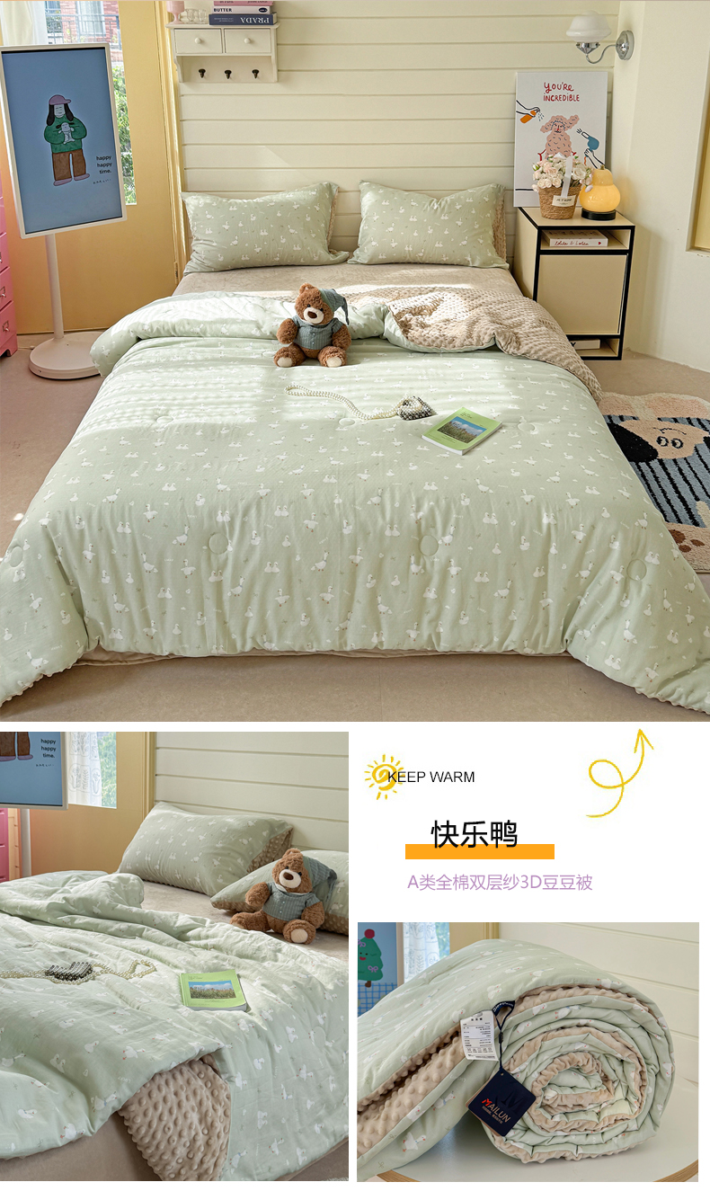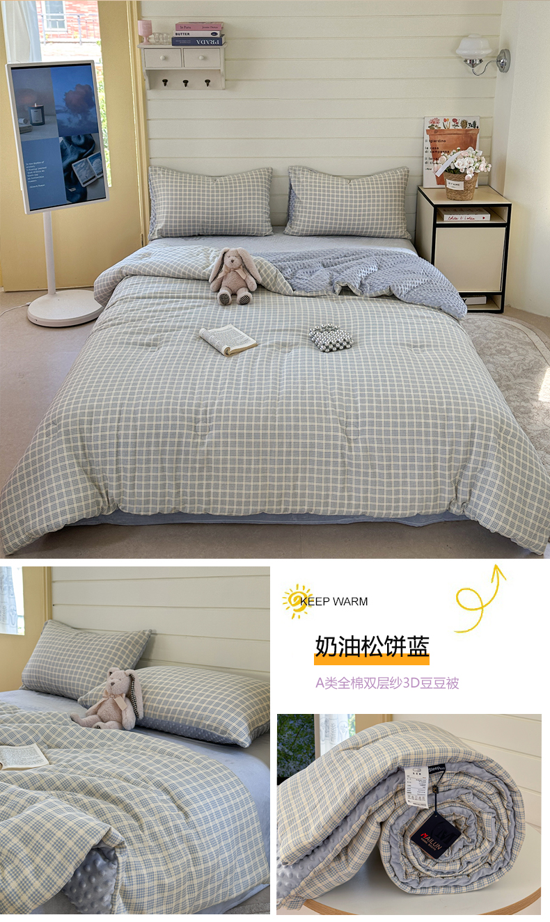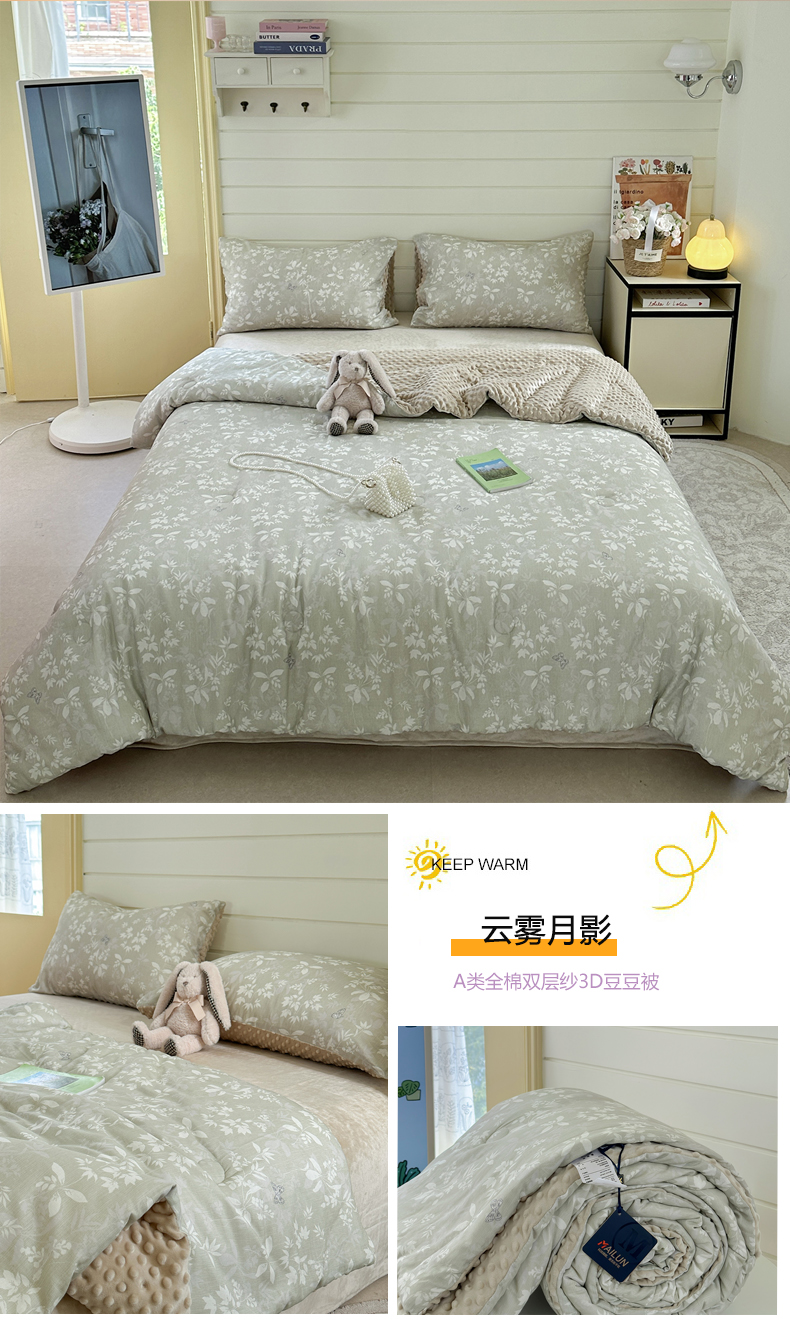• 91家纺网 家纺一手货源 找家纺 麦伦家居 2025新款全棉双层纱3D豆豆被系列被子被芯(可配四件套) 云雾月影