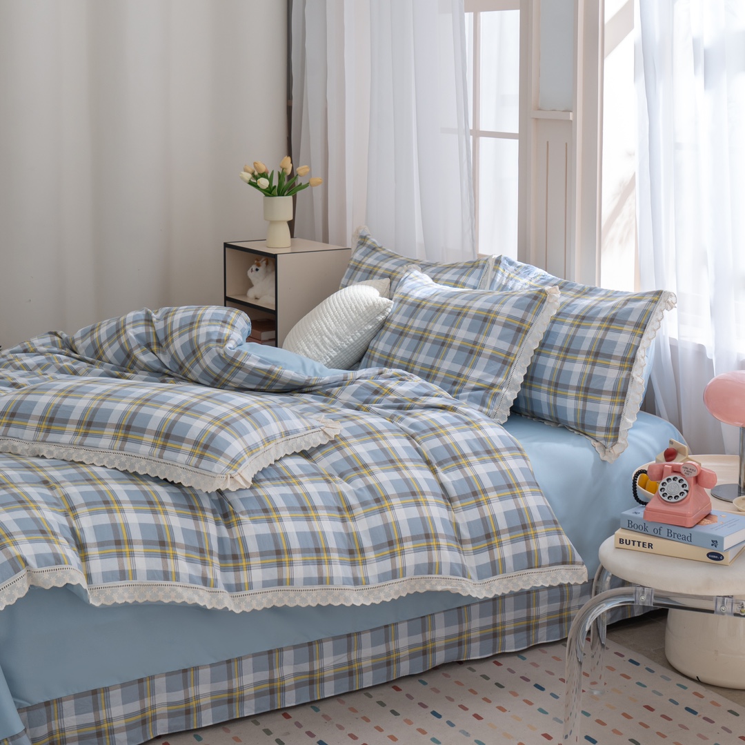 (总)玖琳家纺 2024新款全棉色织水洗棉四件套,粉紫小格,粉紫中格,复古条灰,蓝中格,罗曼黄,蜜恋,肖邦 粉,星辰 绿,星辰紫,雅典 绿,知否