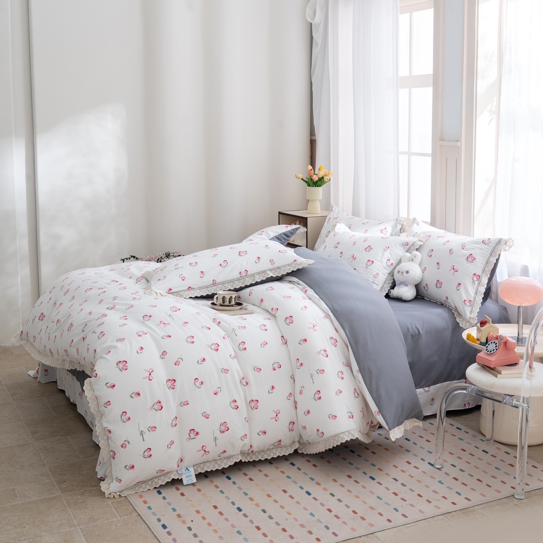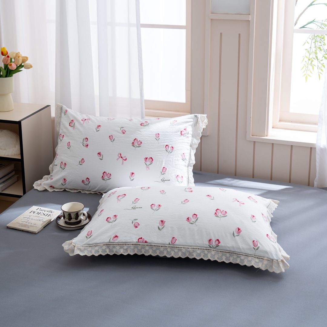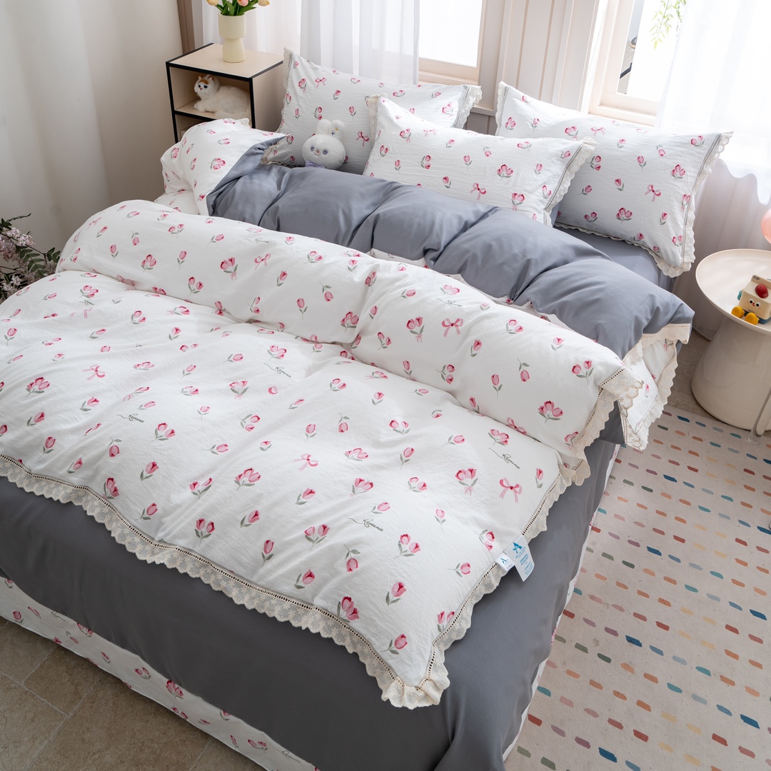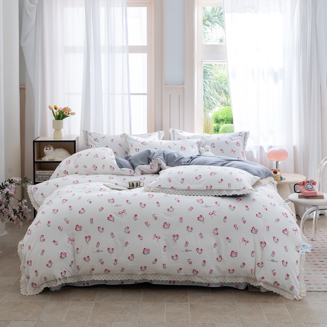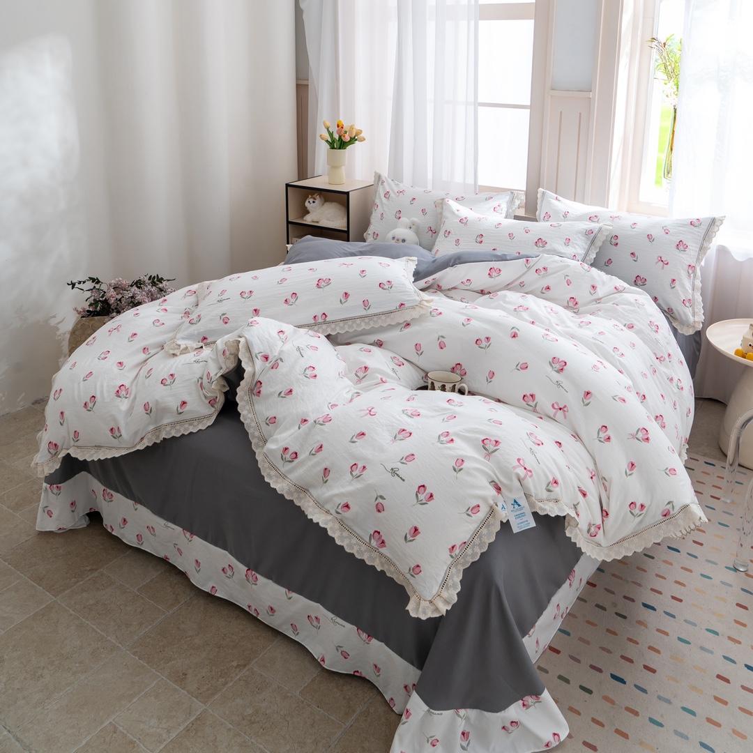 玖琳家纺 2025新款云朵水洗棉皱皱纱精致花边款四件套 蕊昔