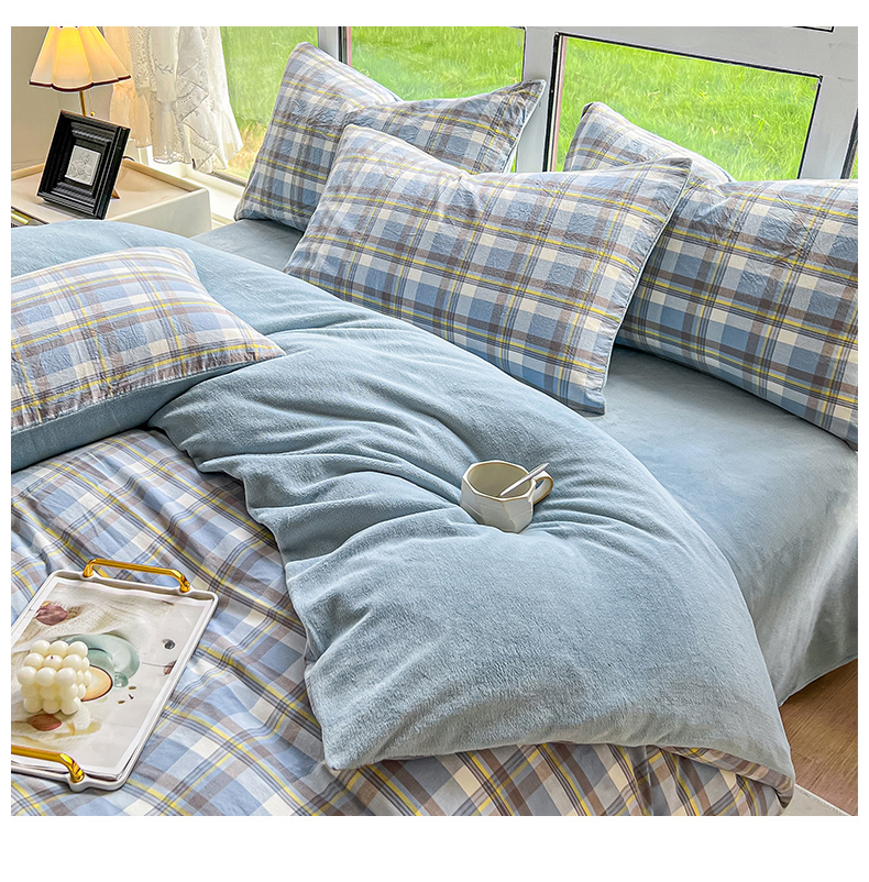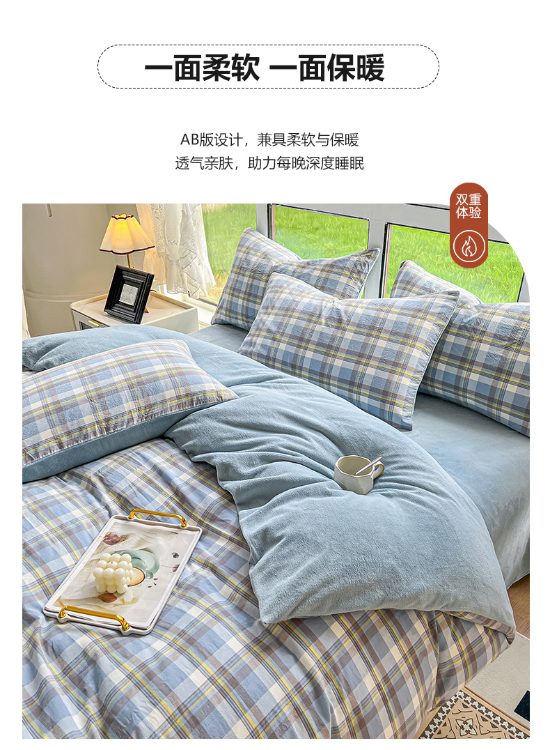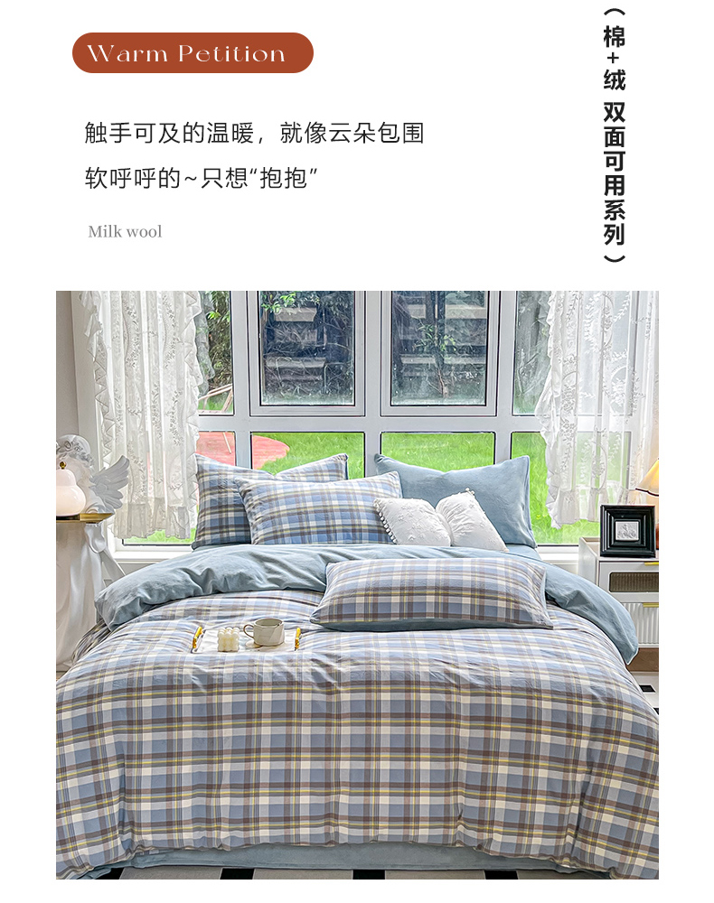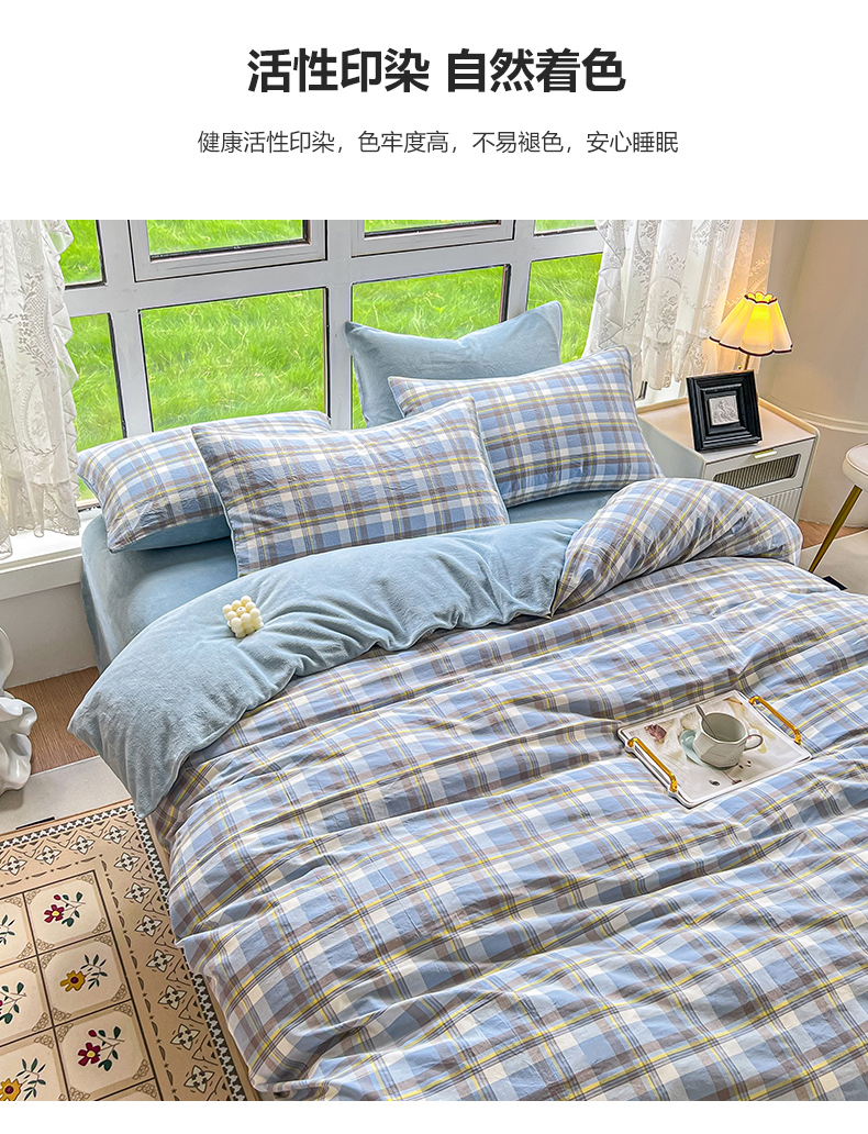 当前位置: 91家纺网 > 商品网购 > 床品套件 > 四件套 > 全棉普通四件套 > 柠萌家居 2025新款无印良品风双拼全棉色织水洗棉加牛奶绒四件套简约全棉拼牛奶绒四件套 提供买家秀 棉+绒-简兮蓝