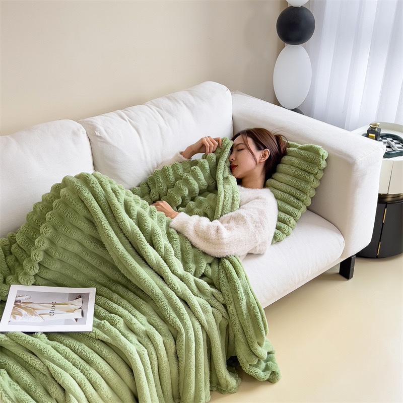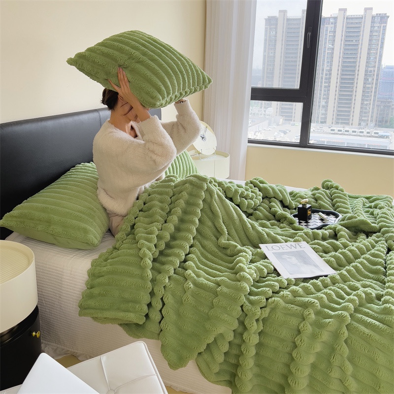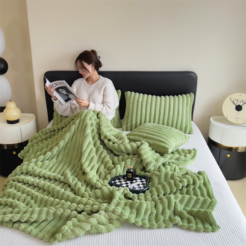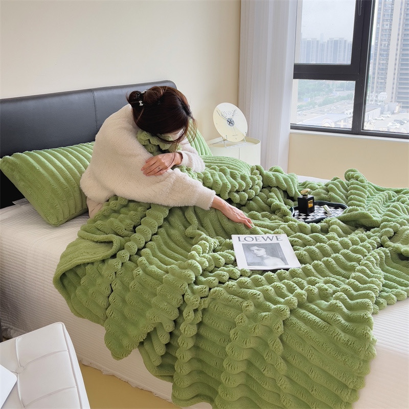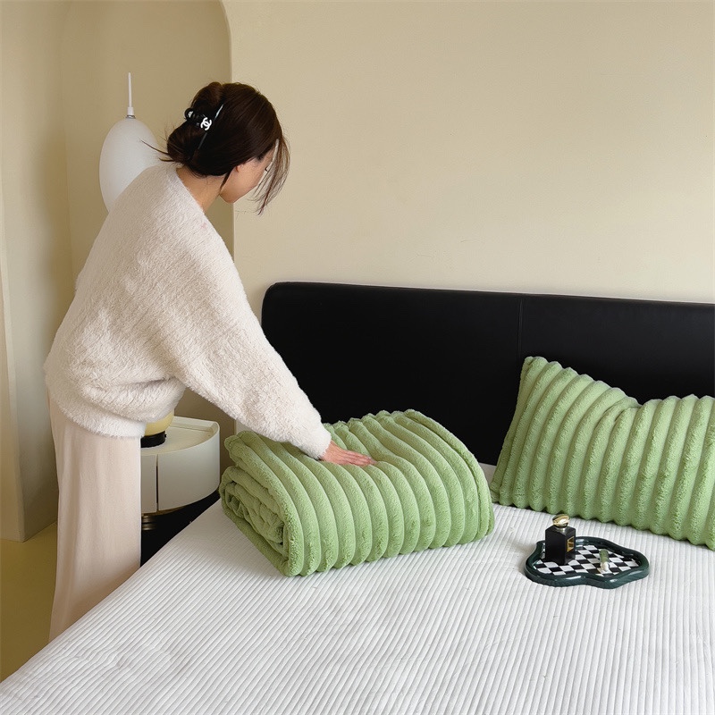 玖琳家纺 2025新款多功能抽条兔兔毛绒毯 果绿
