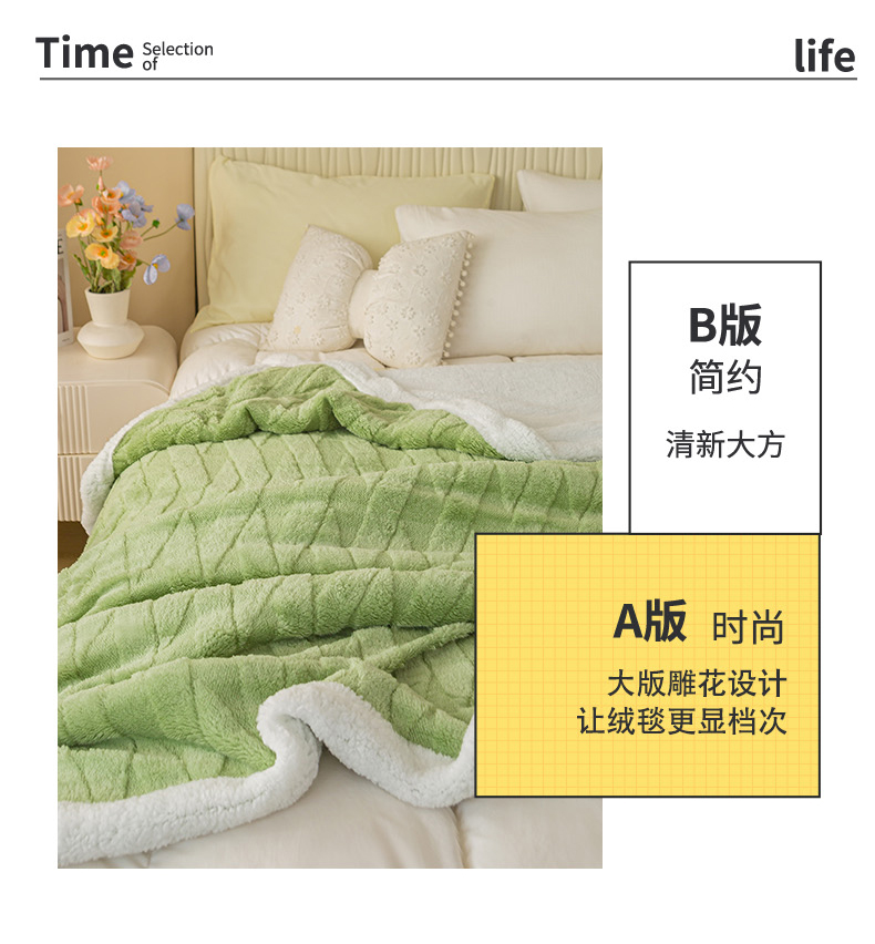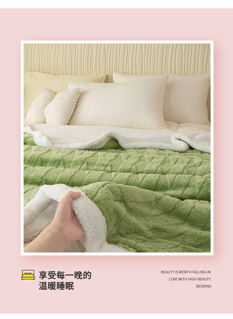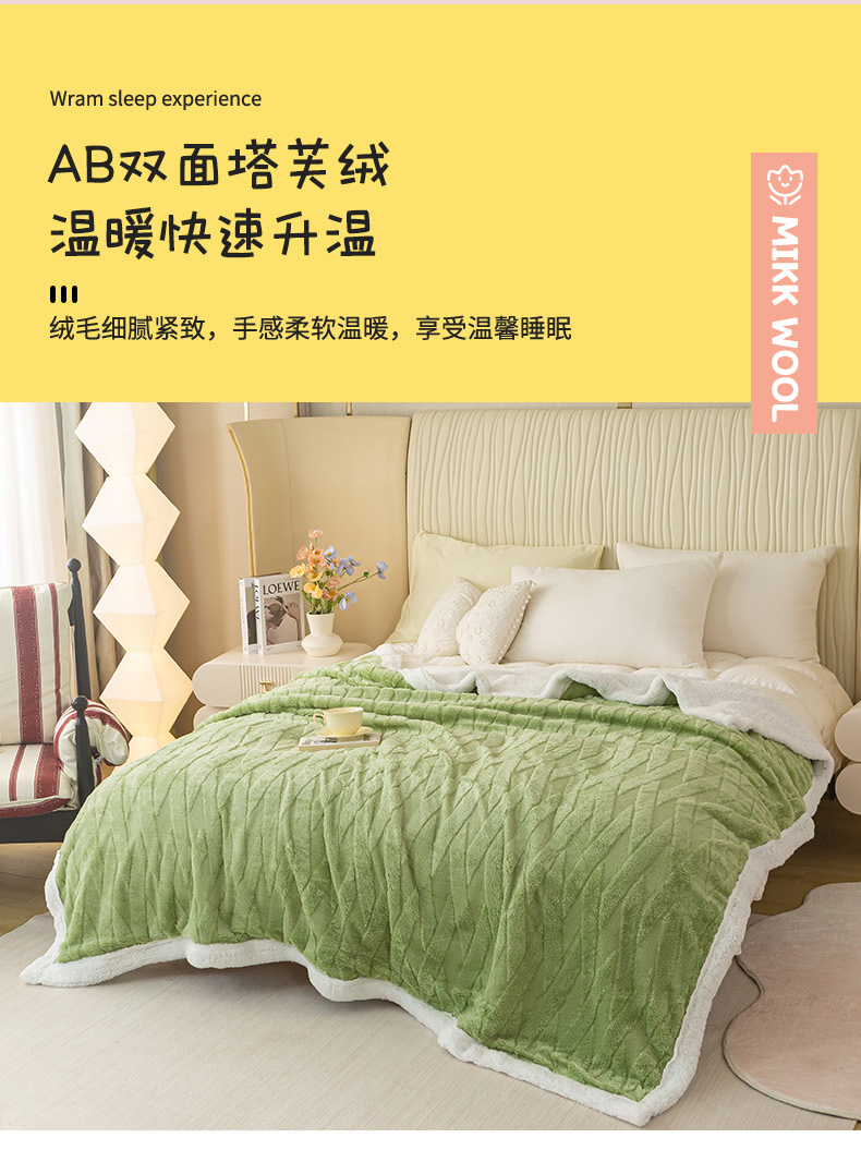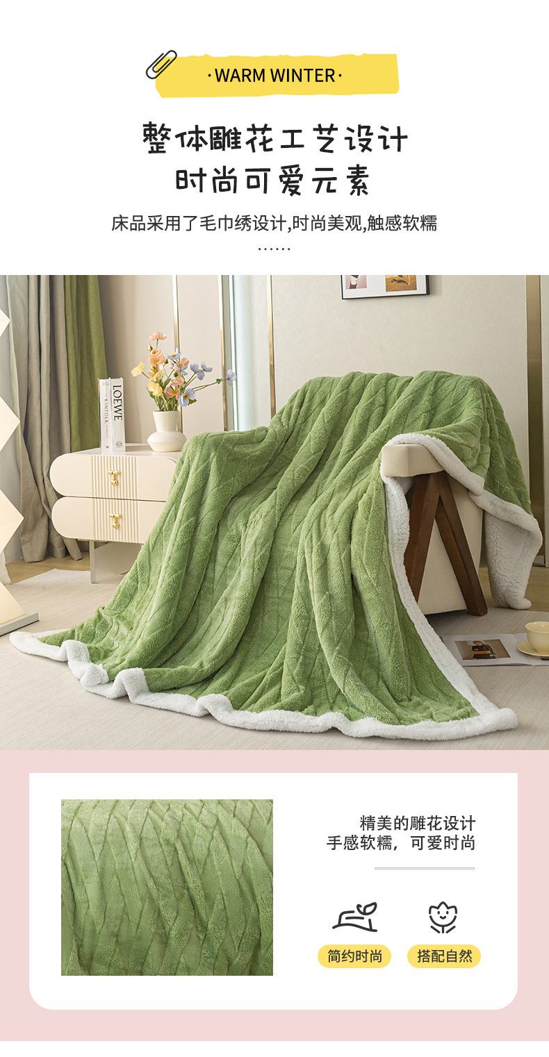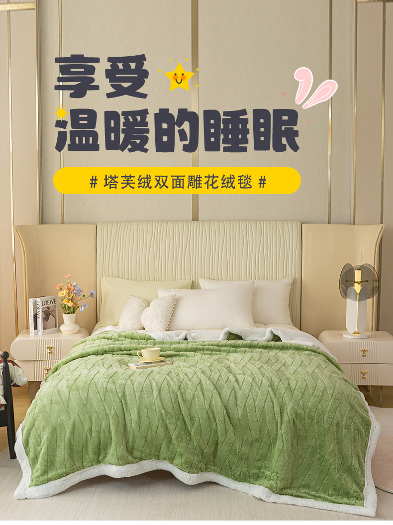 当前位置: 91家纺网 > 商品网购 > 毛毯休闲毯绒毯 > 毛毯 > 佳居缘 【双面绒-交叉纹】 2025加厚保暖羊羔绒毛毯双层塔芙绒毯子跨境专供外贸出口定制 交叉纹-绿