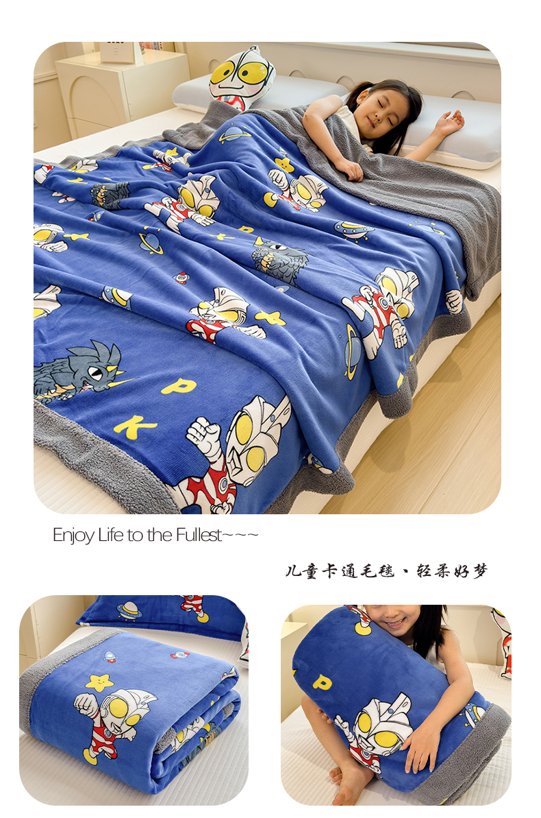 商品名称:云恋家纺 2025新款儿童卡通加厚牛奶绒北极绒双层绒毛毯 蛋仔兄弟