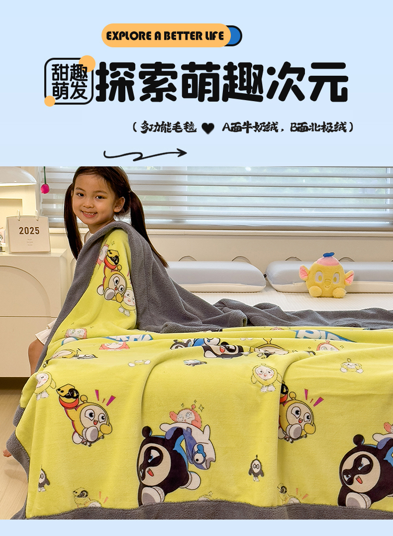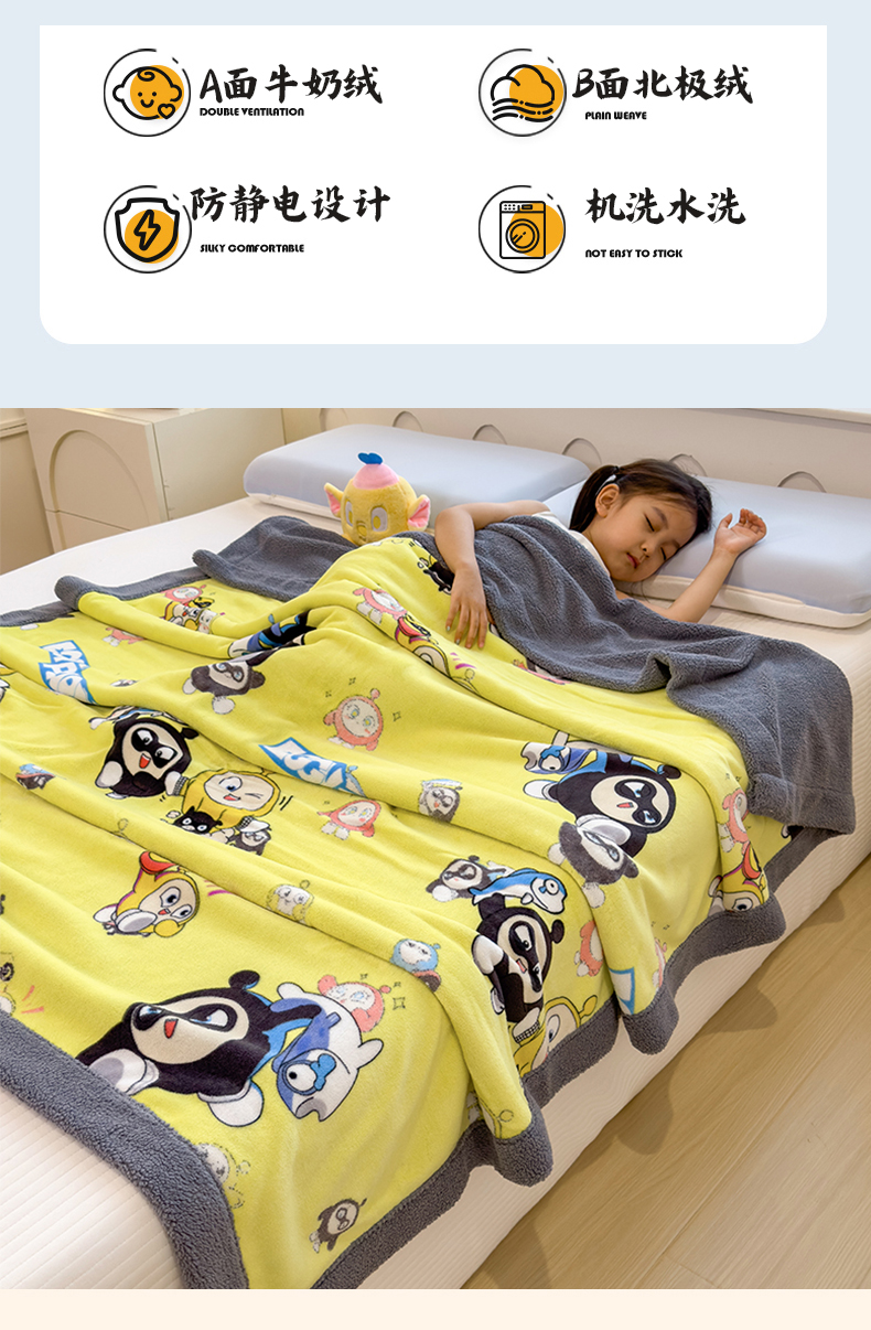 云恋家纺 2025新款儿童卡通加厚牛奶绒北极绒双层绒毛毯 蛋仔兄弟