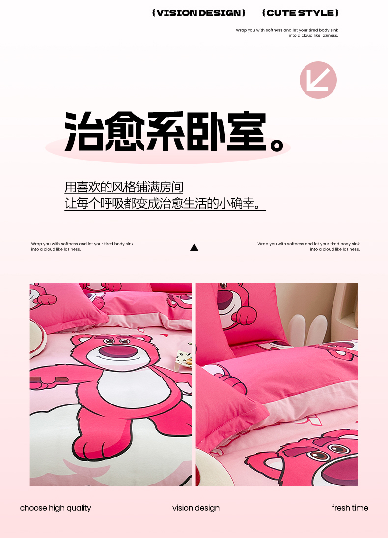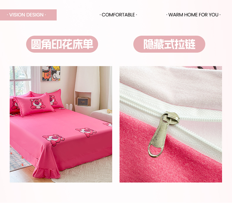 (总)眷恋家纺 2025新款卡通全棉印花四件套,草莓梦-米,大明星-米,黛西米妮-米,酷奇-咖,泡泡米妮-粉,时尚感-粉,探险家-灰,甜蜜的梦-兰,外星仔-兰,嘻哈风-桔,小精灵-米,拥抱爱-米,公主的梦,休闲时光-米
