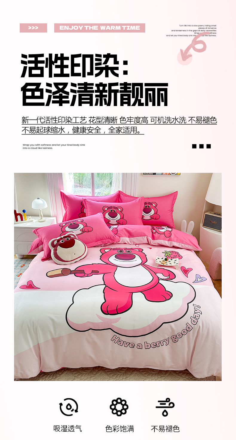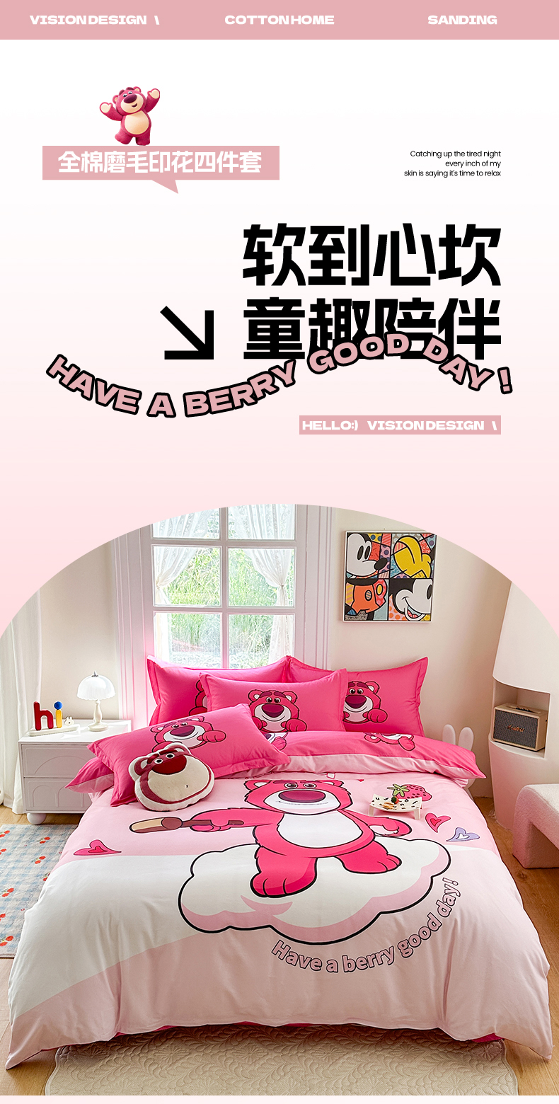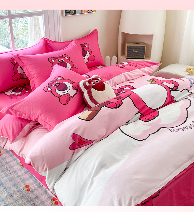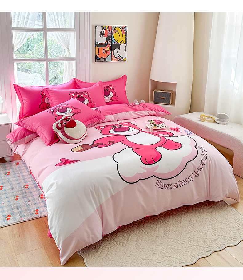 眷恋家纺 2025秋冬加厚全棉生态磨毛卡通三件套四件套 糖心草莓