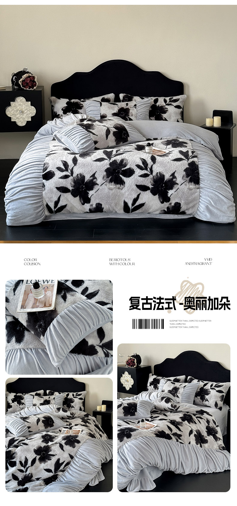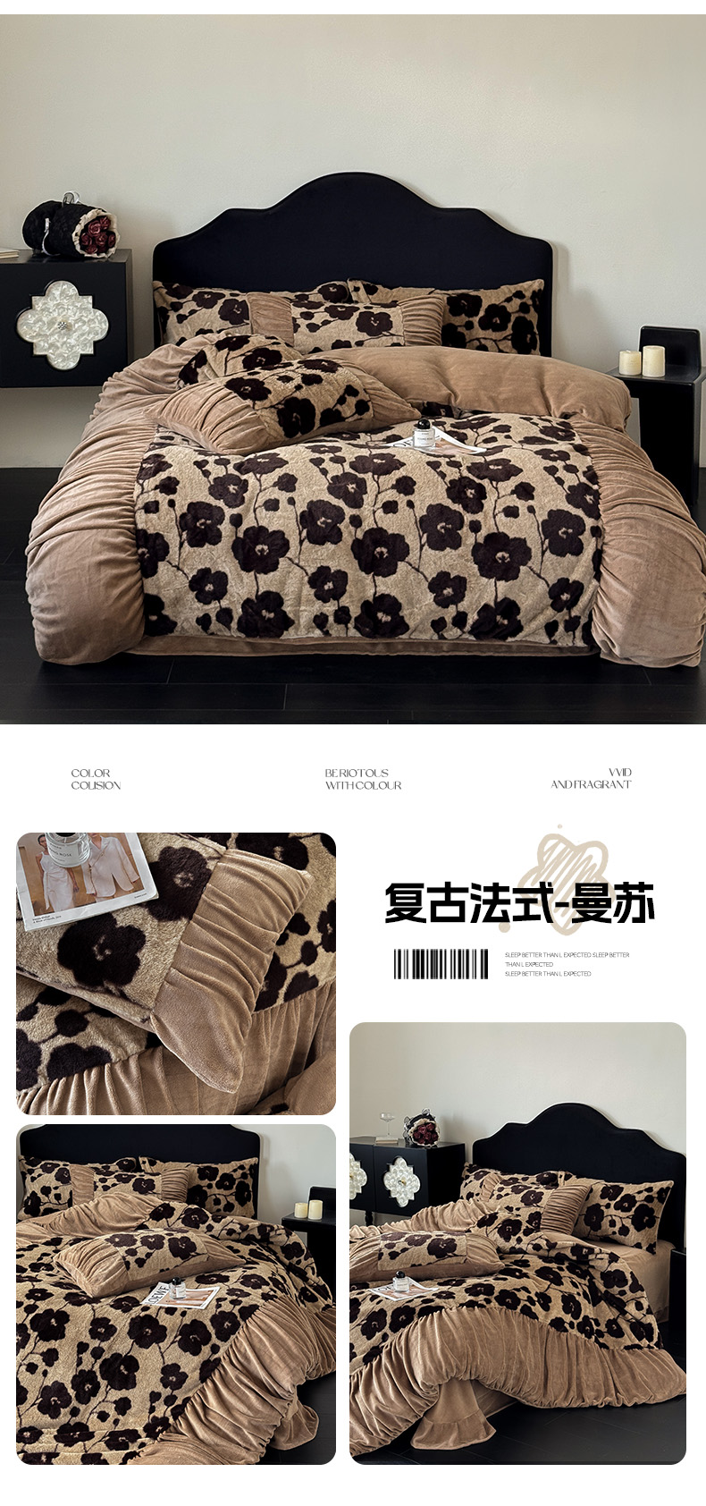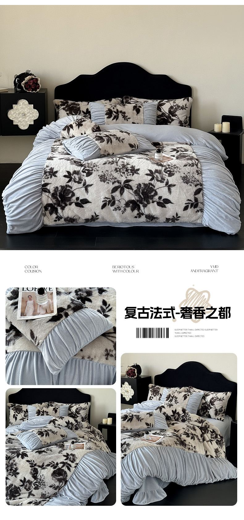 商品名称:新印象 2025新款复古法式兔毛绒保暖四件套 复古法式-芙微