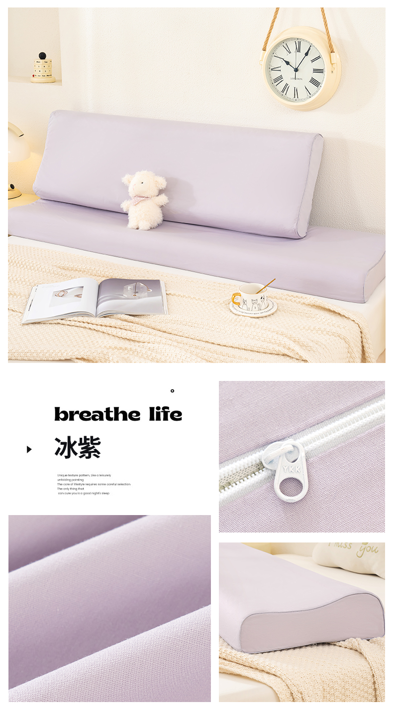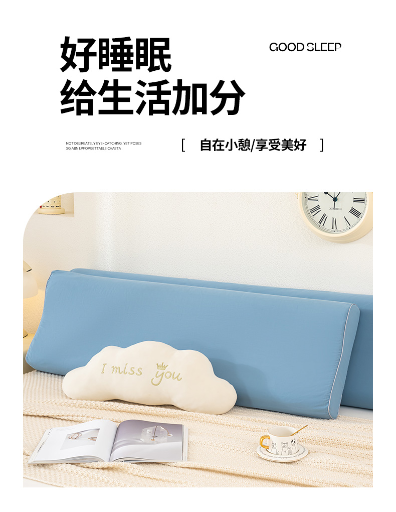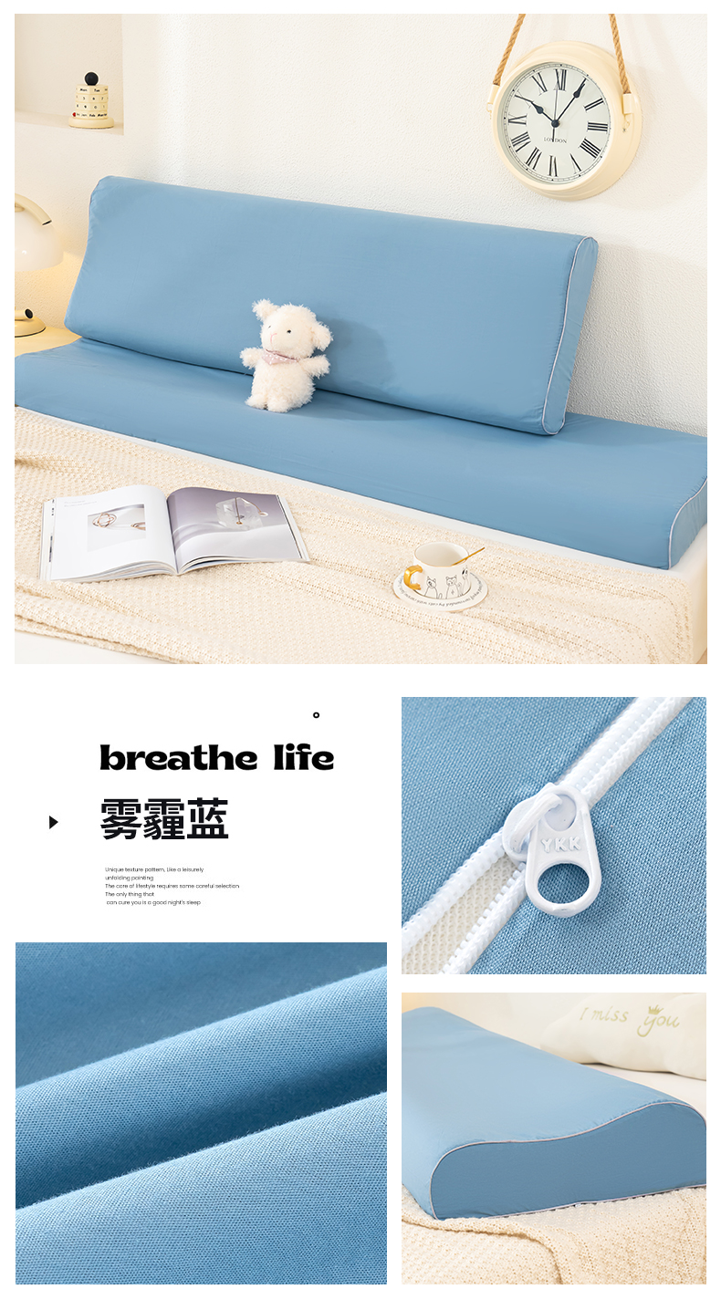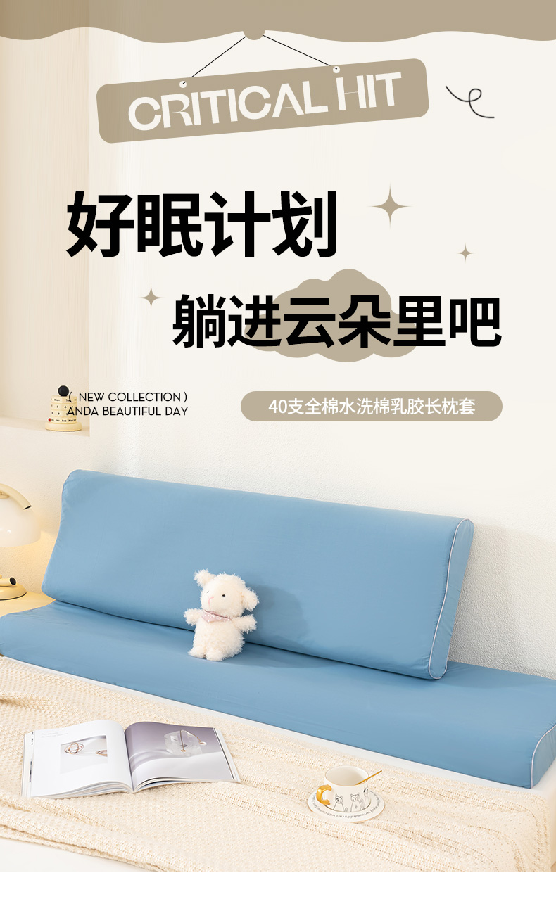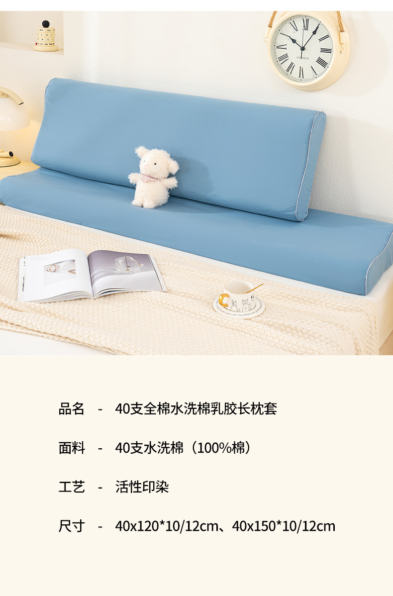 (总)良佐生活 2025新款40支全棉水洗棉乳胶枕双人长枕套,雾霾蓝,夏日冰,冰紫,月影驼,樱花粉,景致绿